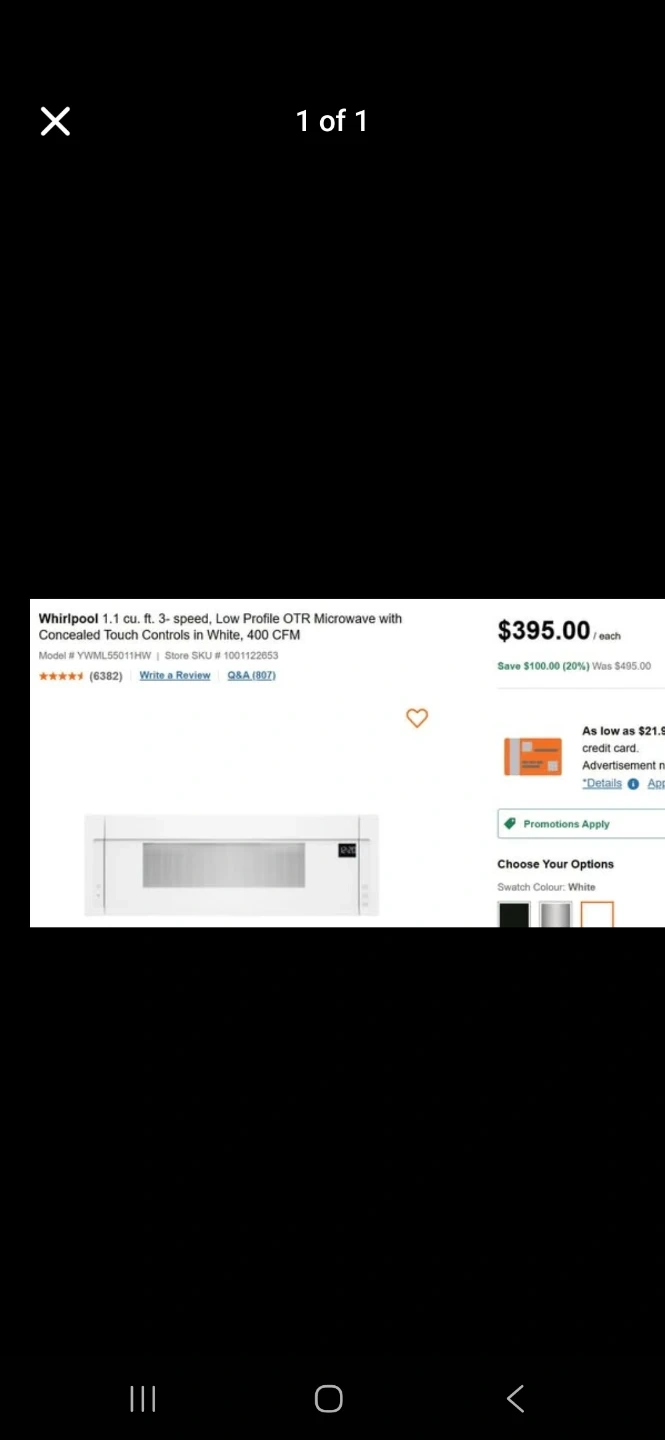 Buy & SellWhirlpool 1.1 cu. ft. Low Profile OTR Microwave - WhiteWhirlpool 1.1 cu. ft. Low Profile OTR Microwave - White$270Whirlpool 1.1 cu. ft. Over-The-Range microwave with concealed touch controls. It's 3-speed and 400 CFM. This microwave is white.BrandWhirlpoolWHERE TO MEETCheck LocationView MapSELLERverifiedChristinaS Riverdale620 reviews1 chats·0 favorites·29 viewsSEND CHAT TO SELLERHi Christina! I’m interested in your listing.Hi Christina! I’m interested in your listing.Get the Karrot app to chatSign In to chat