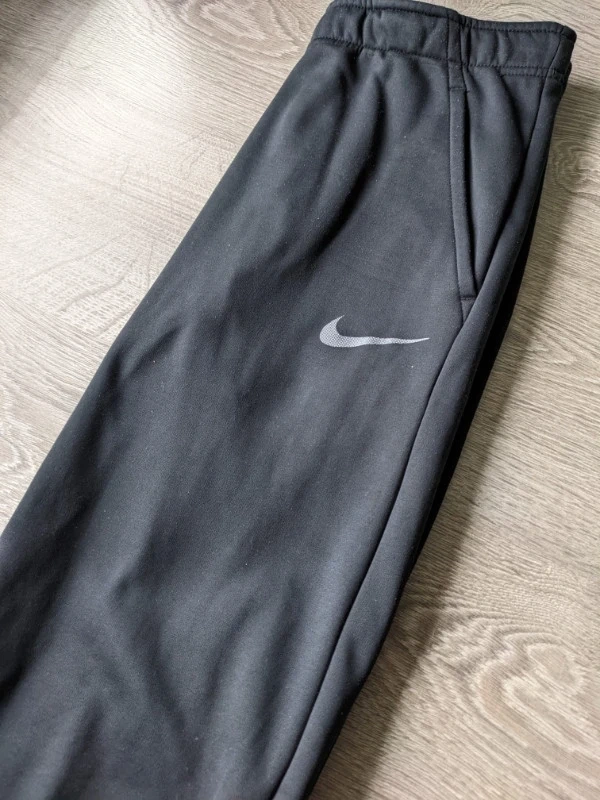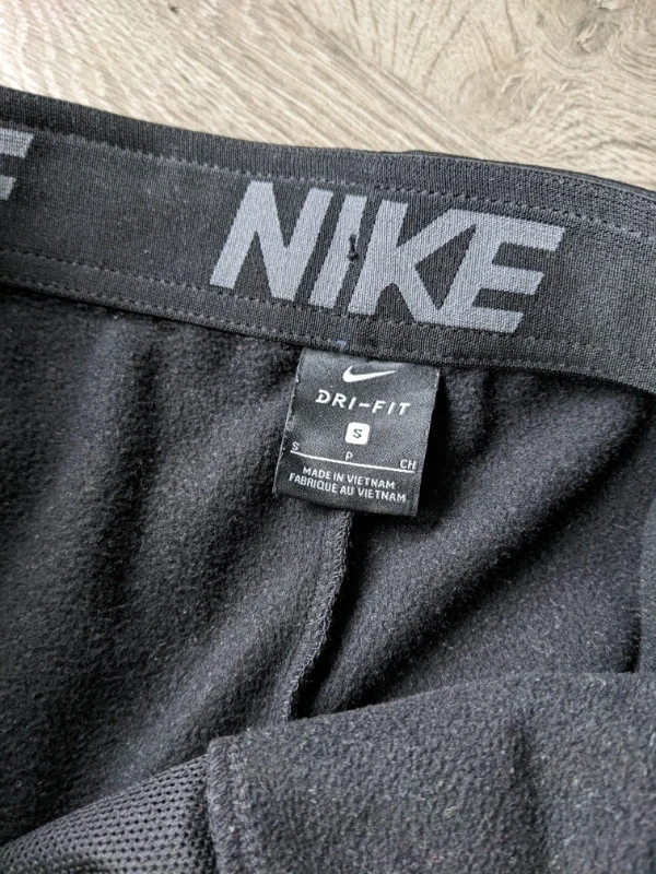 These are Nike Dri-FIT sweatpants in black. They're made from a comfortable, moisture-wicking fabric. Size small. (32"x32")