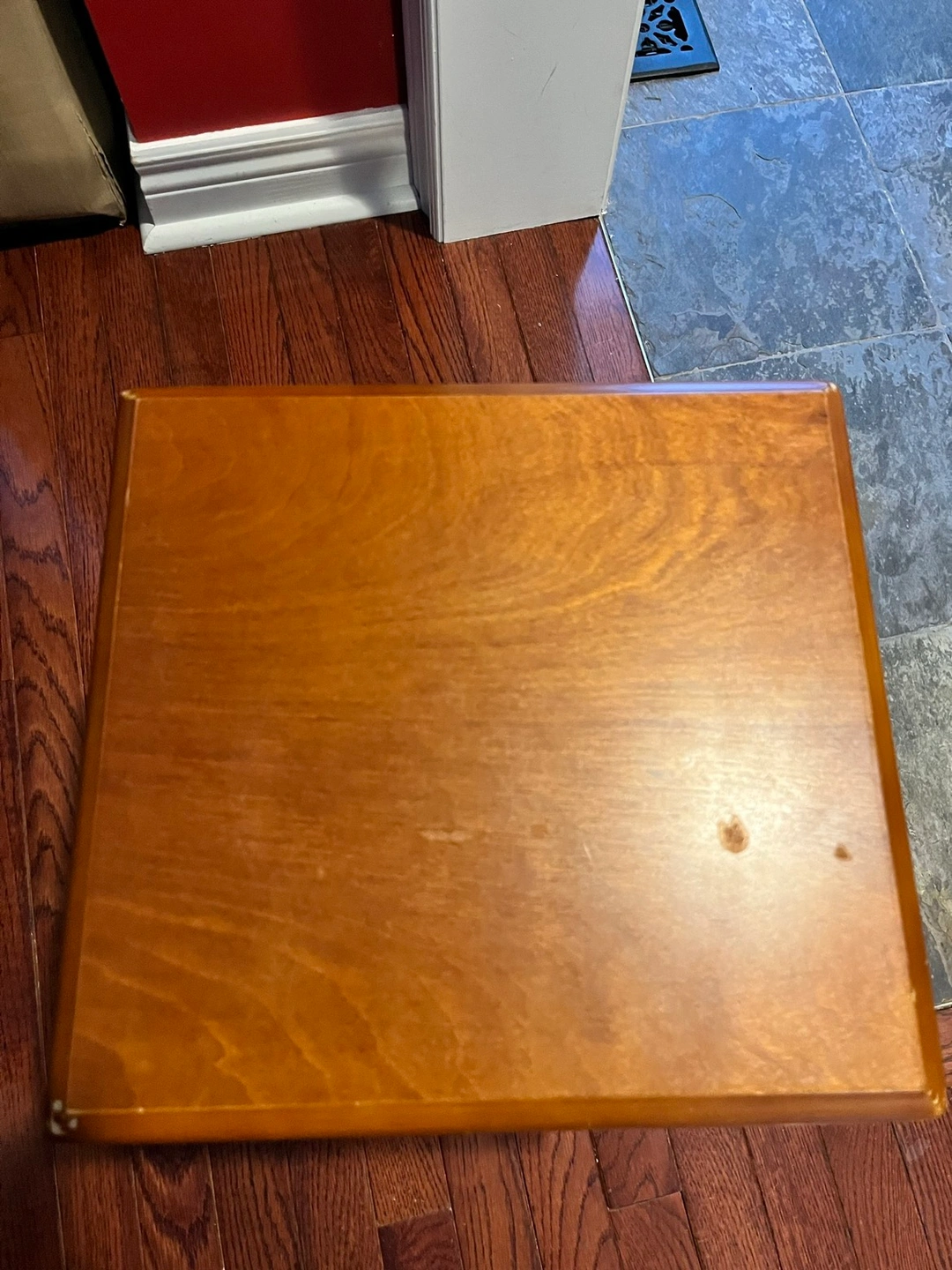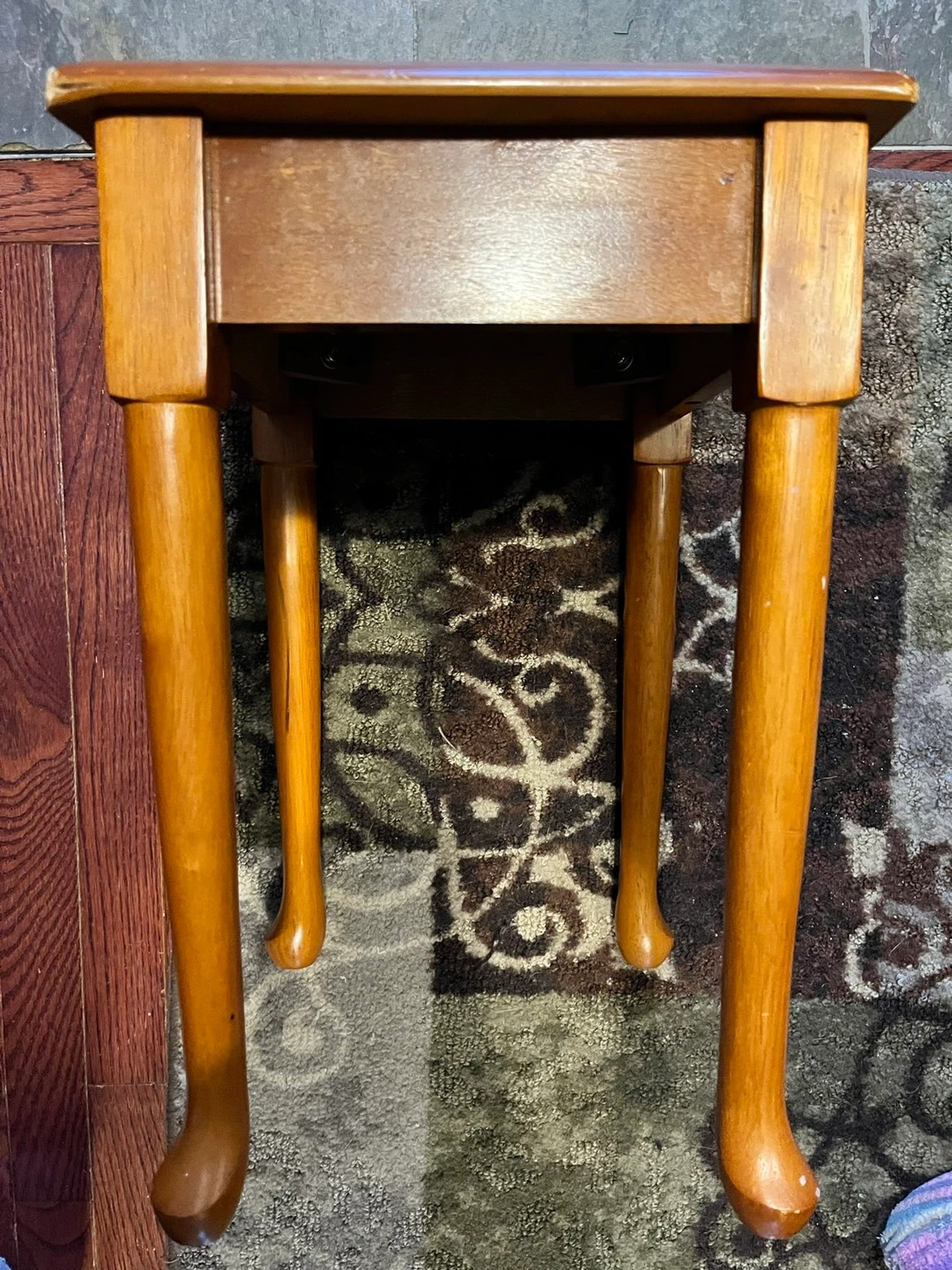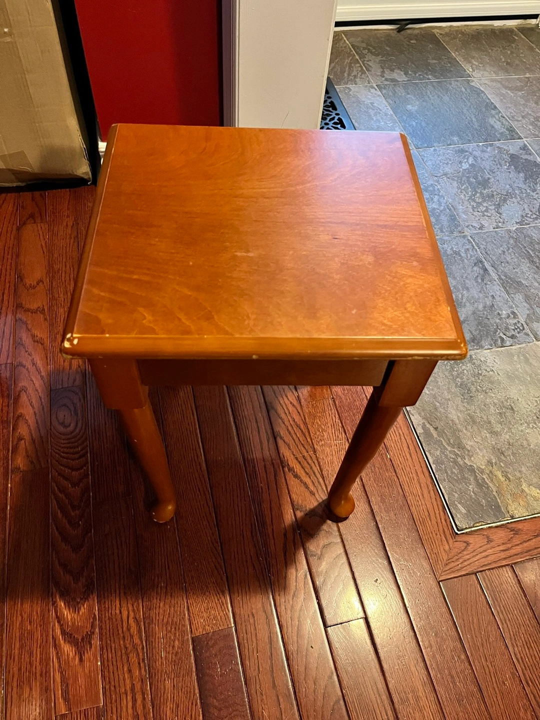 Small side table, has a crack in one corner, doesnβt affect look or use, could repair with wood glue. Some scrapes and flaws, pictured. 12β x 12 3/4β x 18β H. Pick up Brock and Taunton in Whitby.