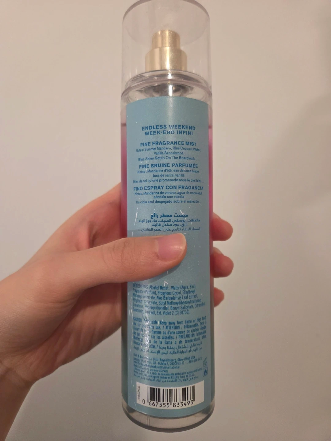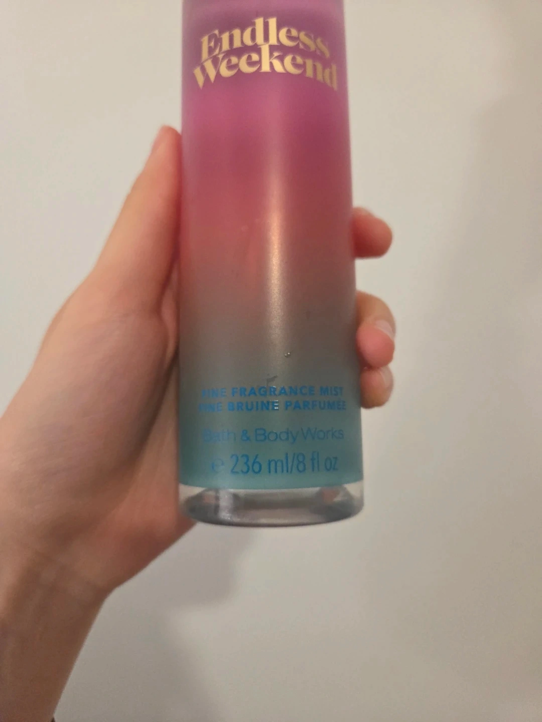 Selling a Bath & Body Works Fine Fragrance Mist in the Endless Weekend scent! It's a full-size bottle with 236 ml / 8 fl oz. The scent has notes of summer mandarin, blue coconut water, and vanilla sandalwood