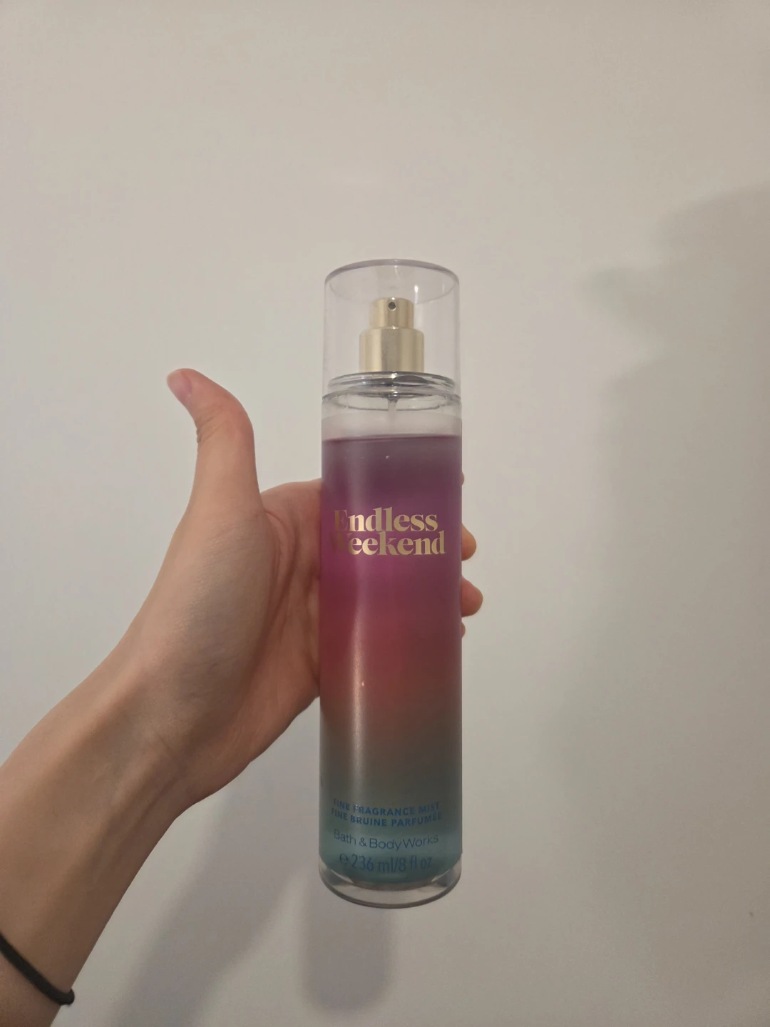 Selling a Bath & Body Works Fine Fragrance Mist in the Endless Weekend scent! It's a full-size bottle with 236 ml / 8 fl oz. The scent has notes of summer mandarin, blue coconut water, and vanilla sandalwood