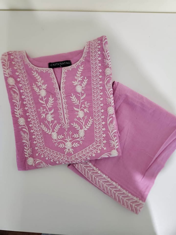 2pcs beautiful suits with embroidery or lace work. Size Available medium and large. Price:$40