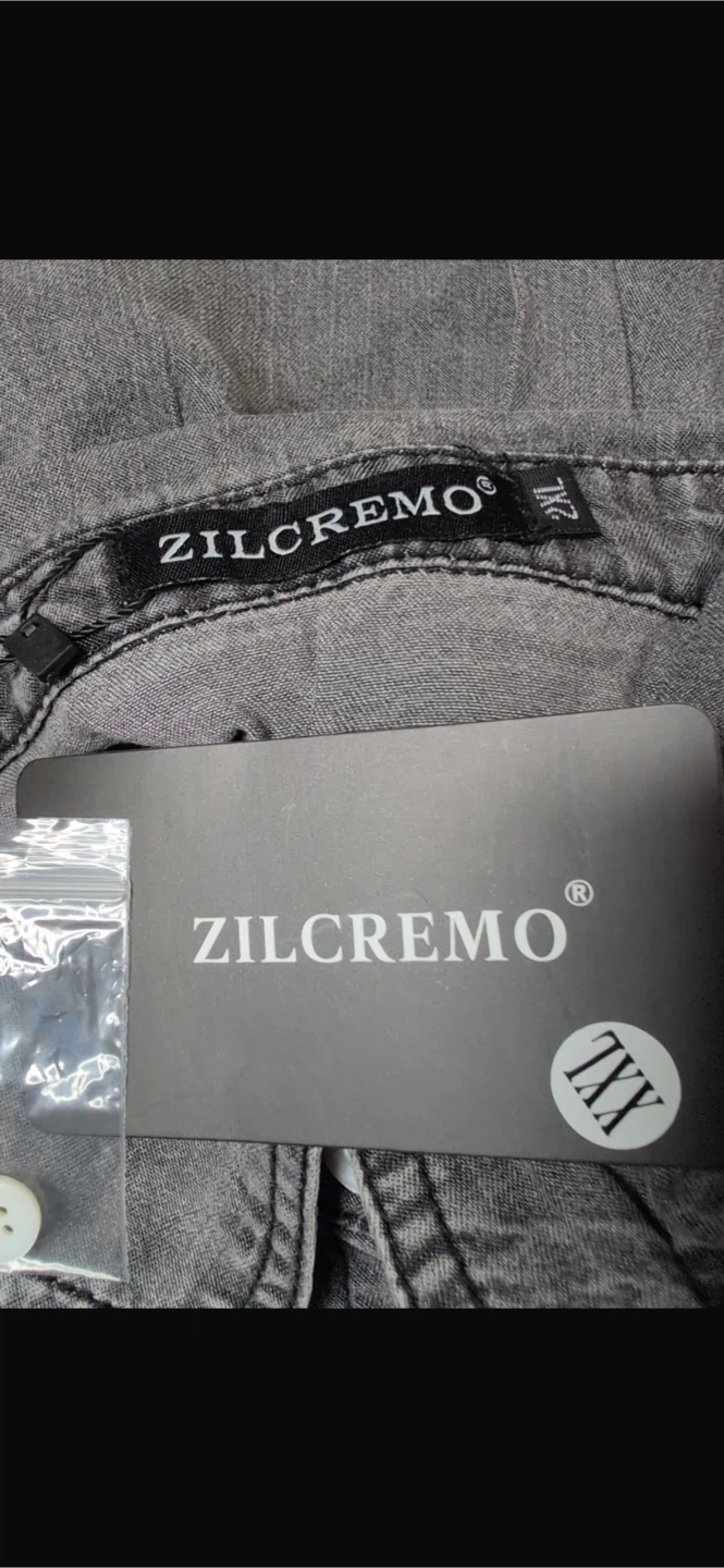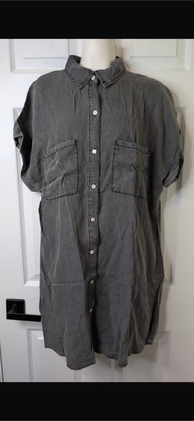 New with tag! This is a ZILCREMO short-sleeve denim shirt dress in a classic grey wash. It features a button-front closure and two chest pockets. Size XXL.