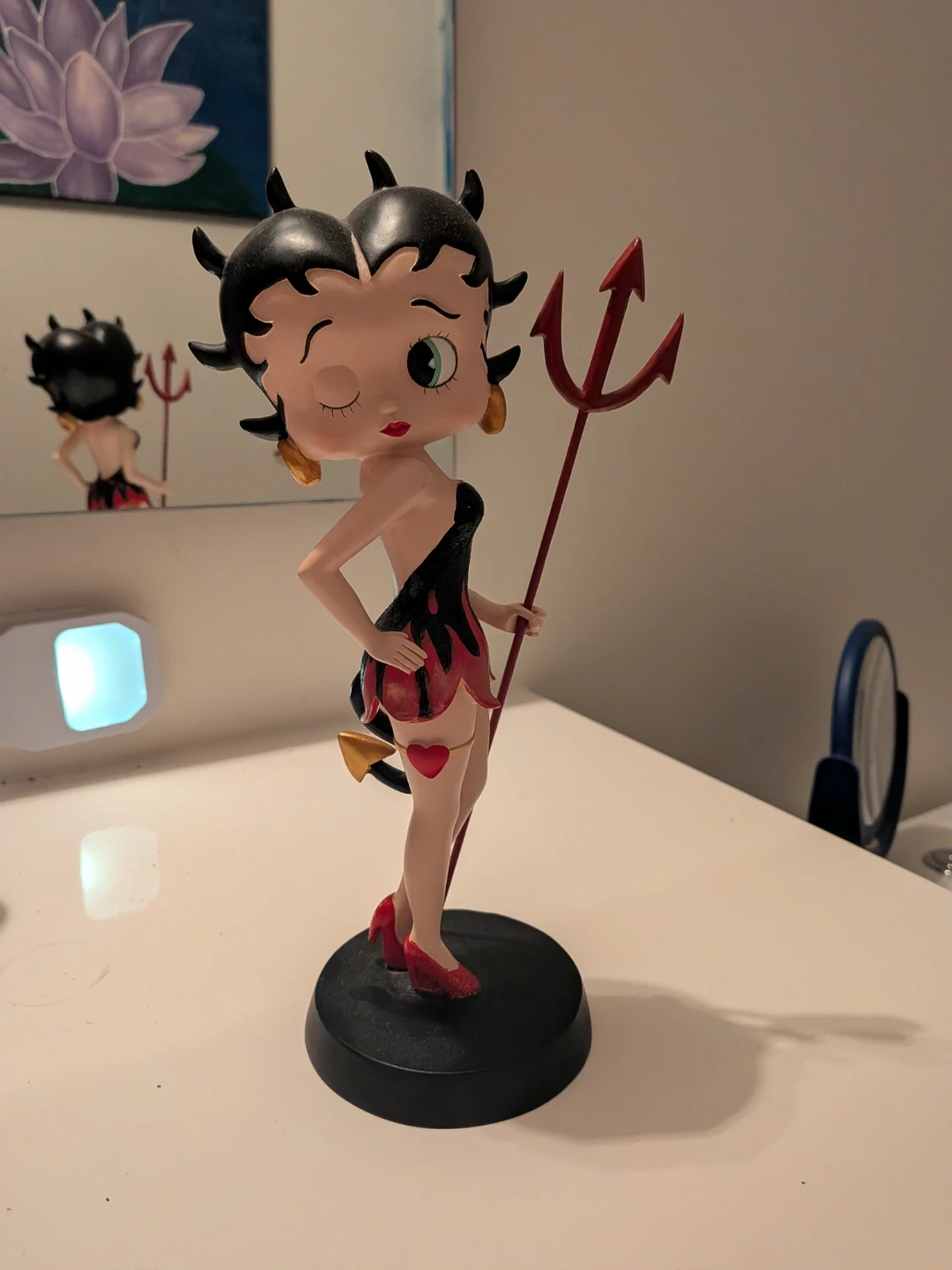 Two Betty Boop devil themed collectible figurines. One is the large Westland Giftware “Little Devil” (2012) about 11 inches tall.