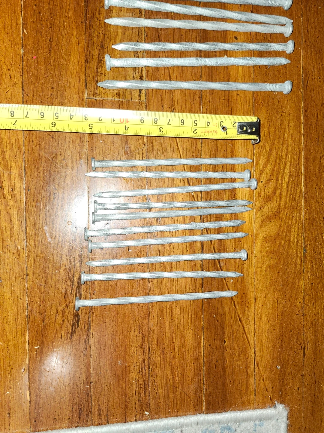 Lot of hot dipped Galvanized spiral Nails 6 in, 5 in, 4 in