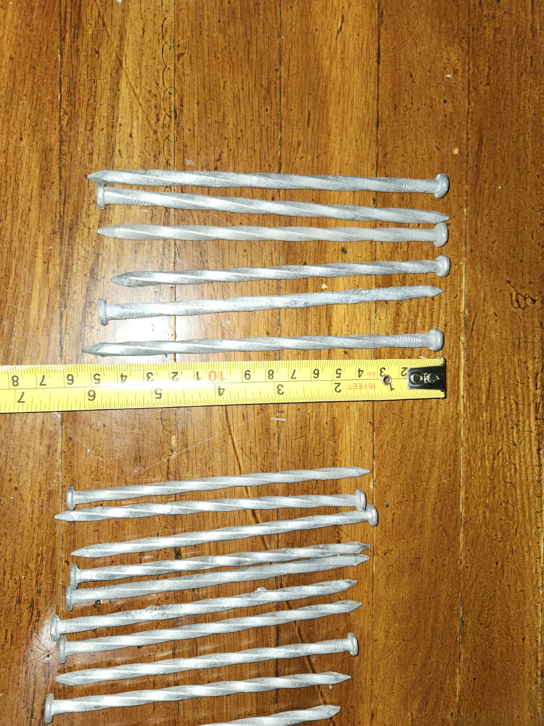 Lot of hot dipped Galvanized spiral Nails 6 in, 5 in, 4 in