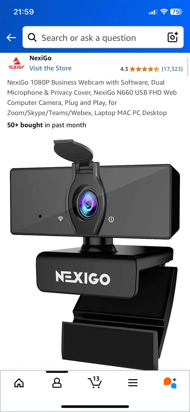 Selling a NexiGo Webcam. It come with a privacy cover. This NexiGo N660 USB FHD Web Computer Camera is plug and play, and is compatible with Zoom/Skype/Teams/Webex, Laptop MAC PC Desktop