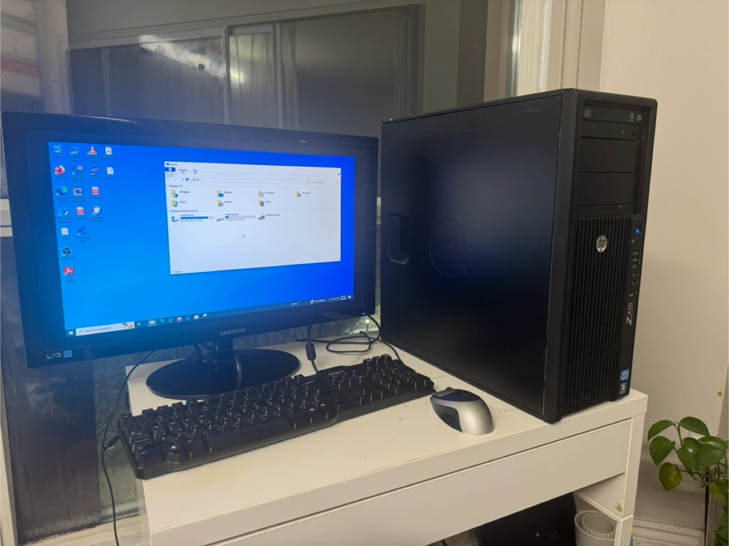 Fully loaded workstation great for gaming station too with accelerated speed and graphics card. HP Z420 Workstation computer with a Samsung monitor, keyboard, and mouse. It has a 110 GB local disk and a 3.63 TB client data drive. Includes Intel Xeon CPU E5-1650 processor. Sapphire Nitro+ Radeon RX 590 8GB Special Edition graphics card, It features 8GB of GDDR5 VRAM and a 256-bit bus width It has a core clock speed of up to 1560 MH