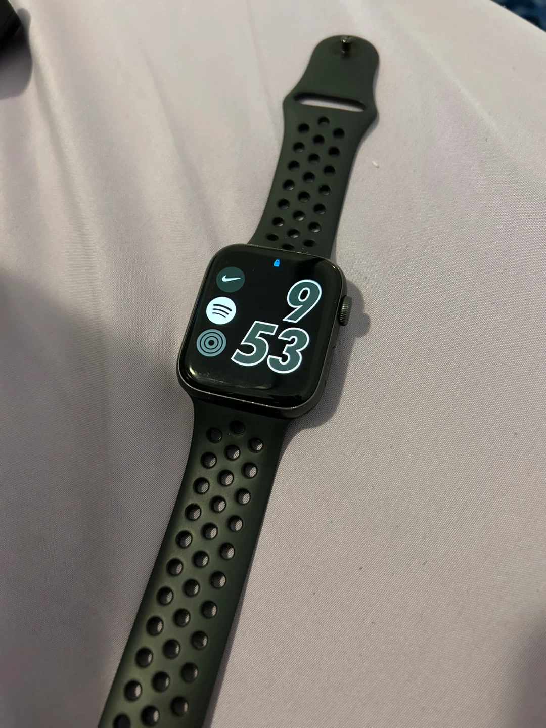 Selling an Apple Watch Series 5, 44mm, silver aluminium case. It's the GPS model, comes with the white sport band. Screen is in good condition, just 1 scratch. Watch is in working order. pickup only