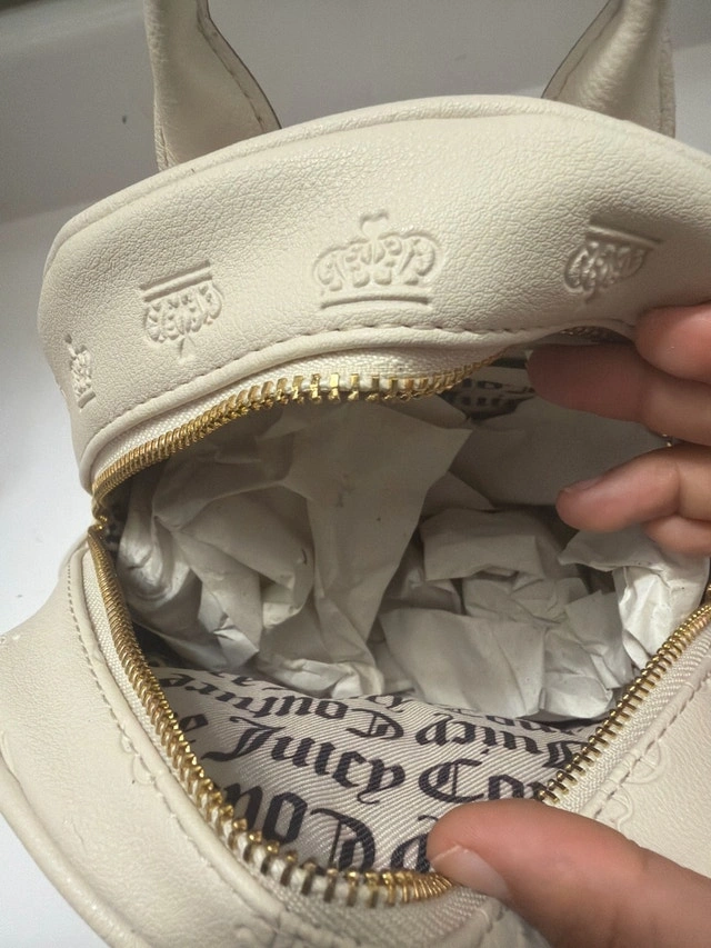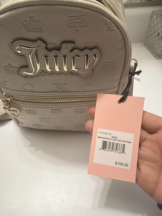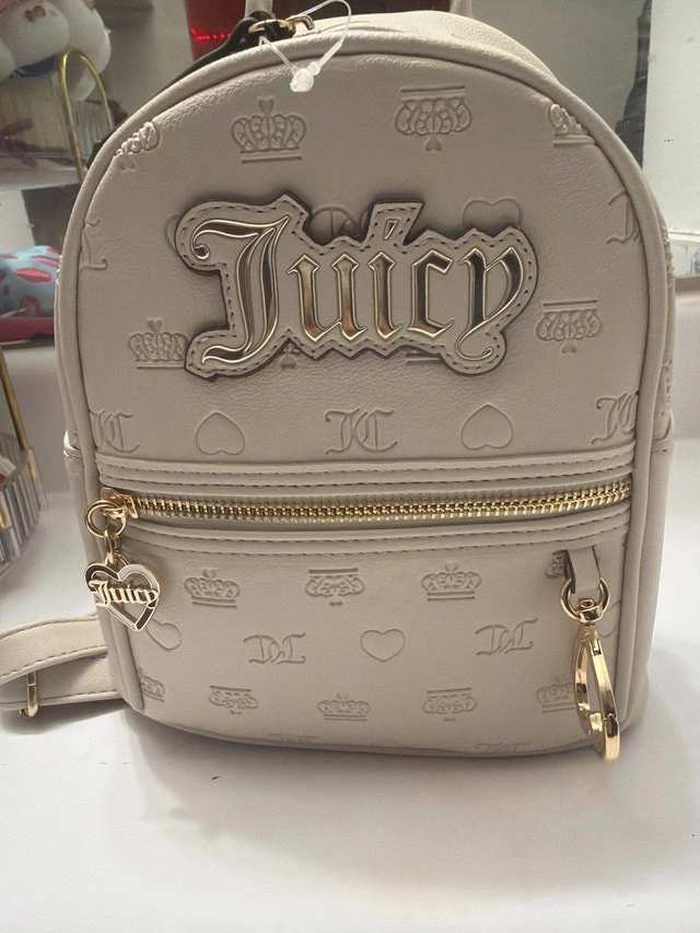 This is a brand new Juicy Couture mini backpack in an angelic white colour. This bag has never been used and comes with original tags. Features: Brand: Juicy Couture, Colour: White, Includes: Mini backpack and keychain set, Condition: New with tags. Let me know if you're interested!