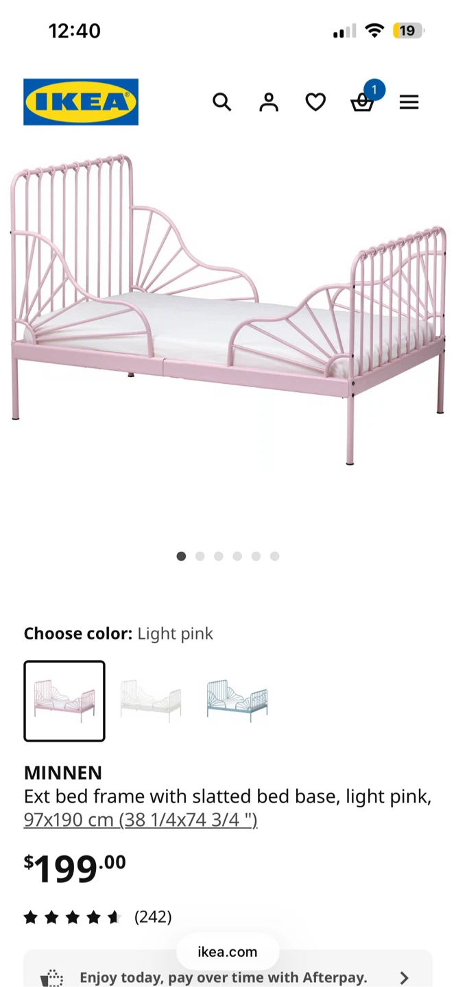Selling a light pink IKEA MINNEN extendable bed frame. It's in great shape and ready for a new home!