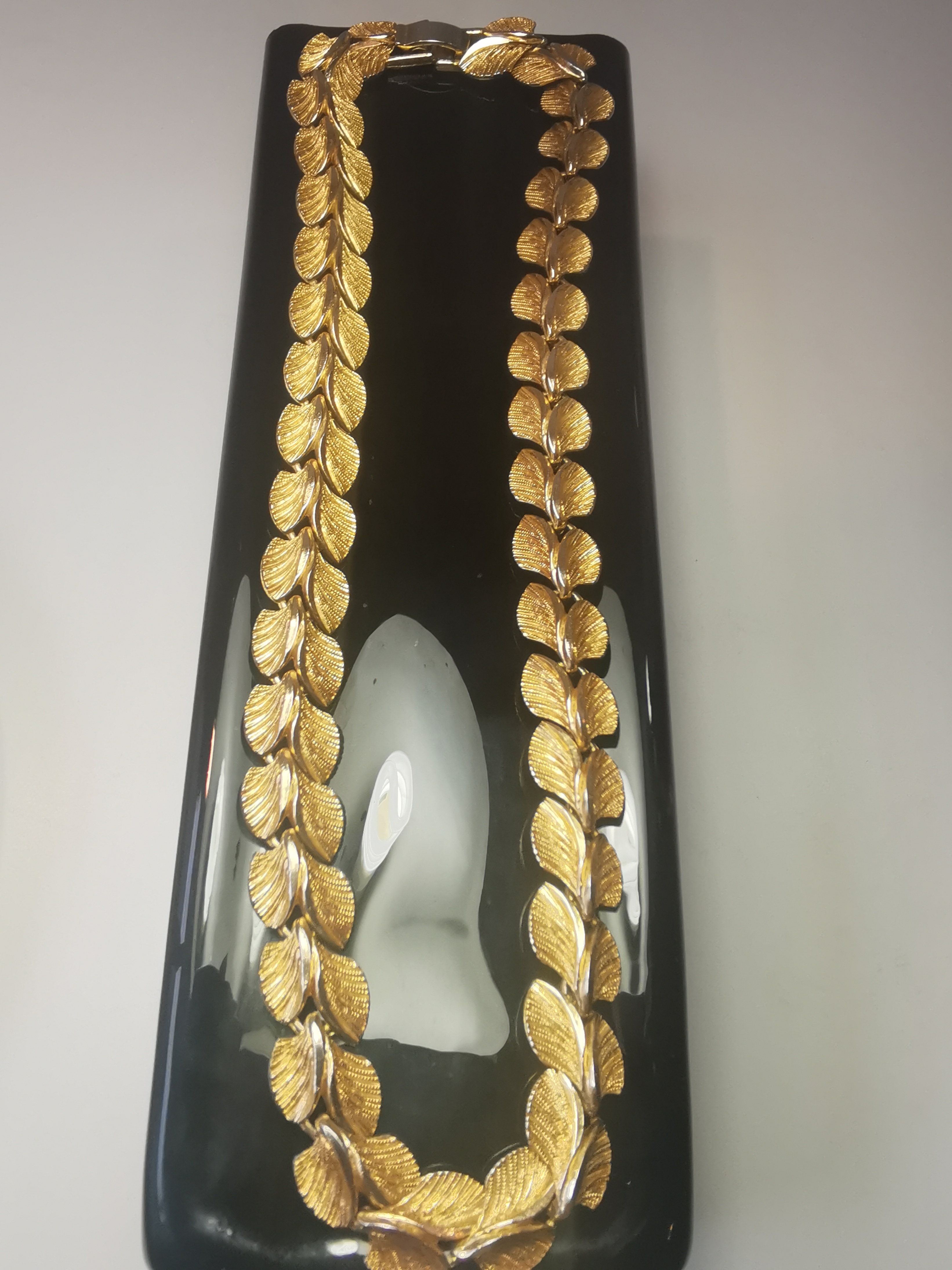 1960 Gold Tone Leaf Link Necklace 16.5" Choker 13mm Wide