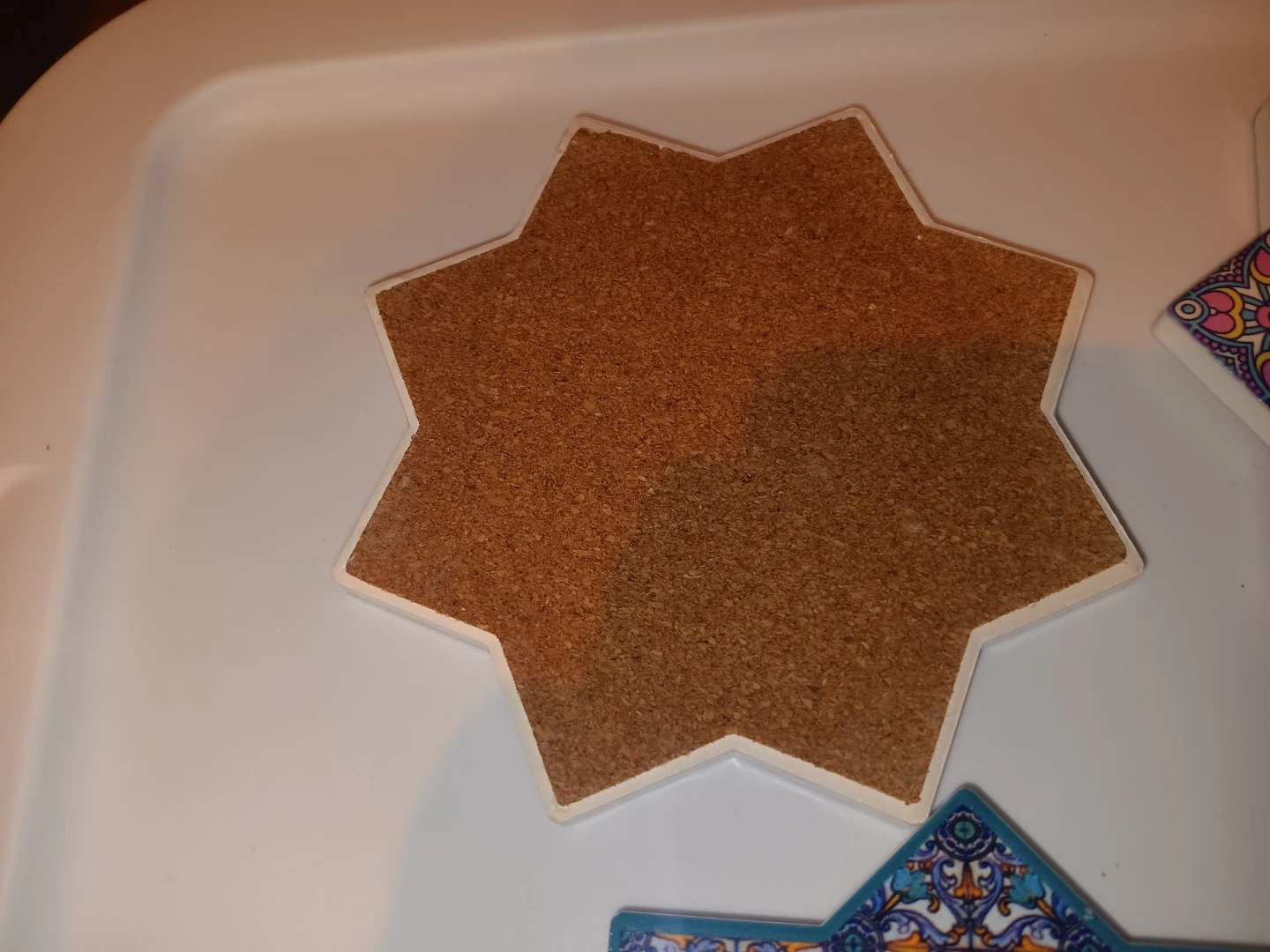 Decorative coasters, each with colorful patterns. They're made with a ceramic top and a cork backing. Perfect for protecting surfaces from drinks! 14 coasters in bundle for $4. Some genuine marble, plastic, ceramic.