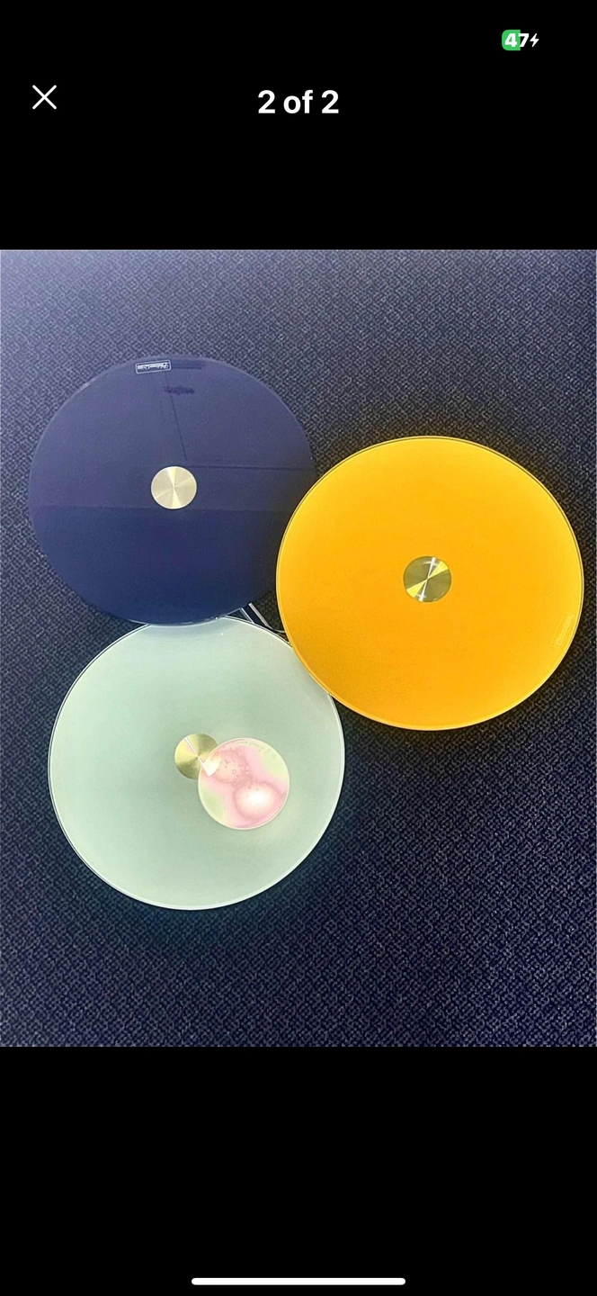 This coffee table has three tiers and is in great shape. The table is made of metal and glass. The three tiers are removable and can be arranged in a variety of ways.