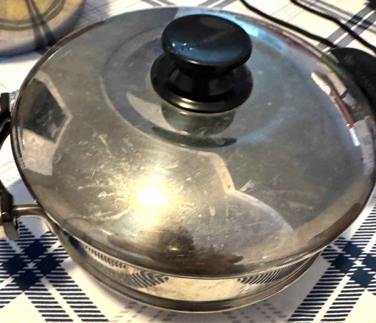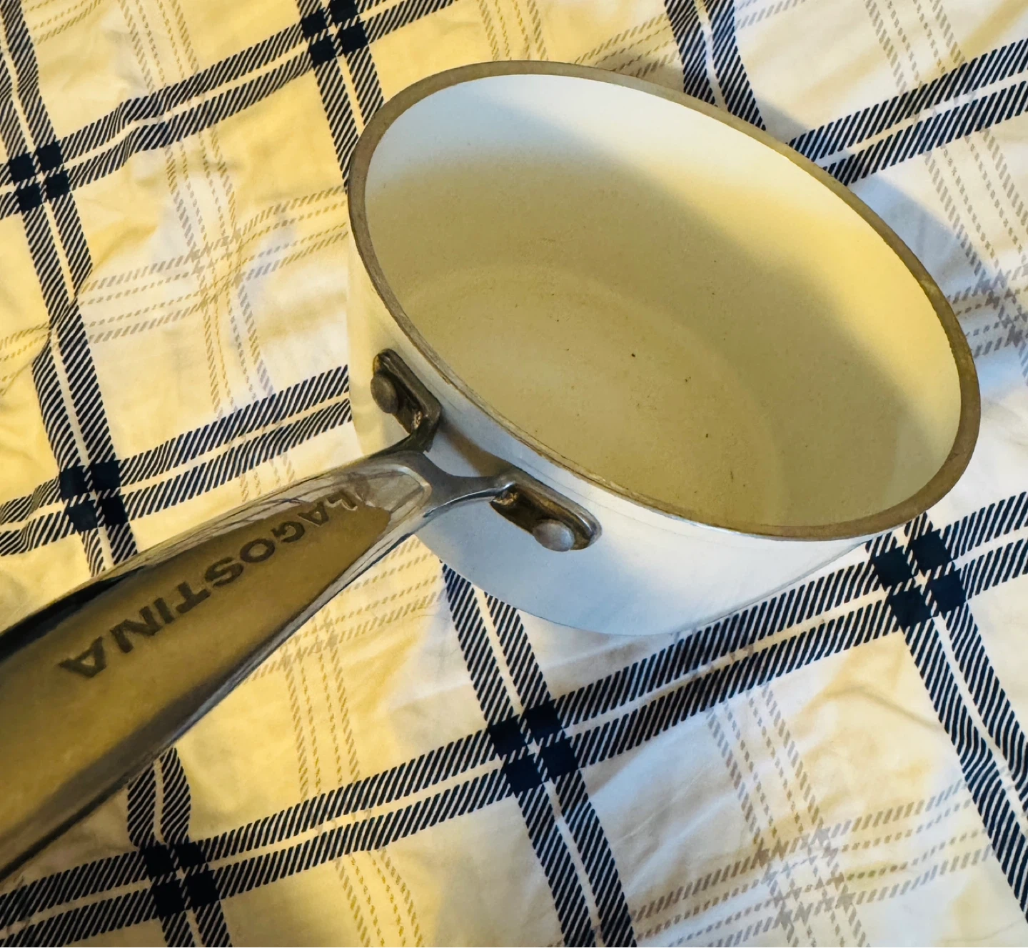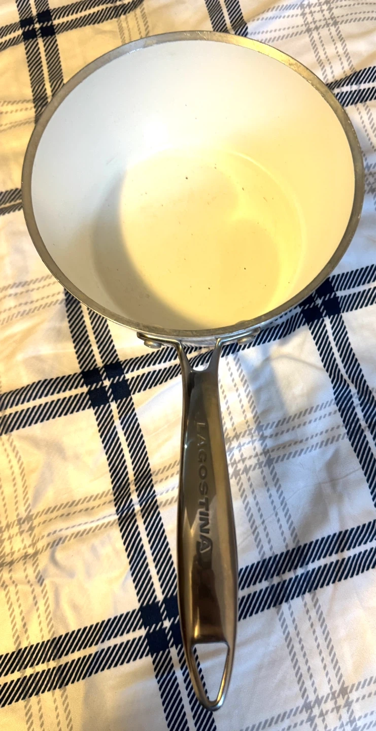 A stainless steel saucepan with a matching lid. Kitchen pots piece for everyday cooking.