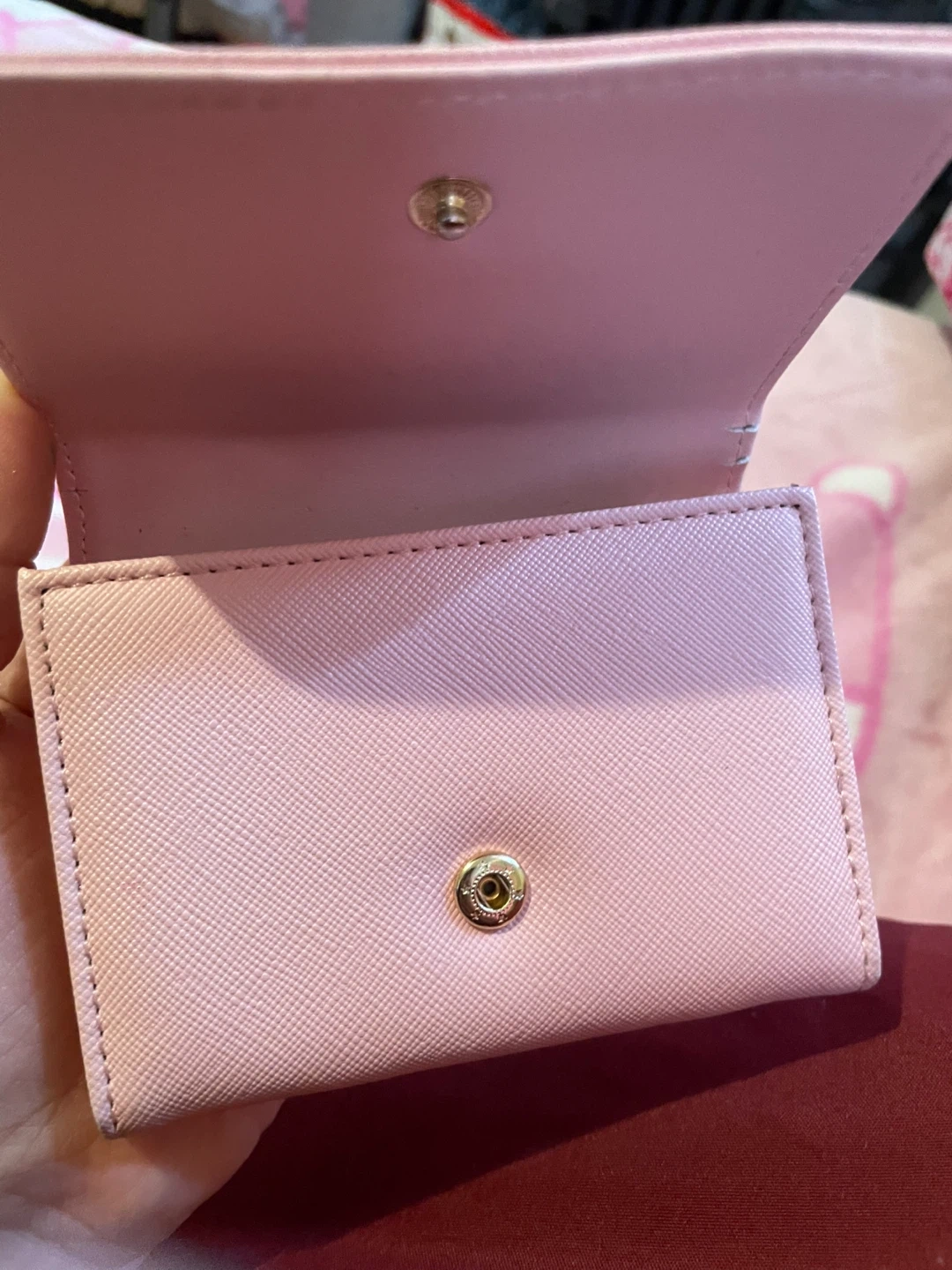Cute pink card holder wallet featuring My Melody. It's made of faux leather and has a snap closure. Small and compact, it's perfect for carrying your essential cards!