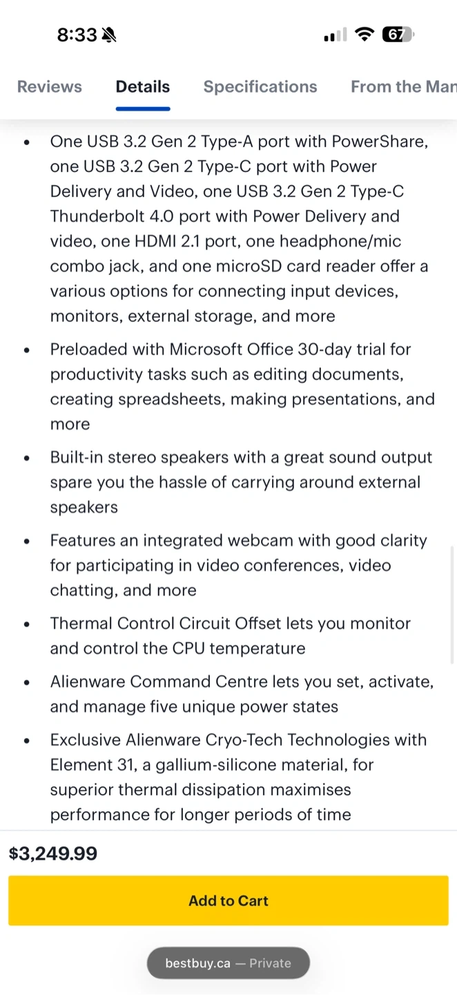 This Alienware x15 gaming laptop has an Intel Core i7-11800H CPU and 16GB RAM. It comes with a 512GB SSD and an NVIDIA RTX 3070 graphics card.