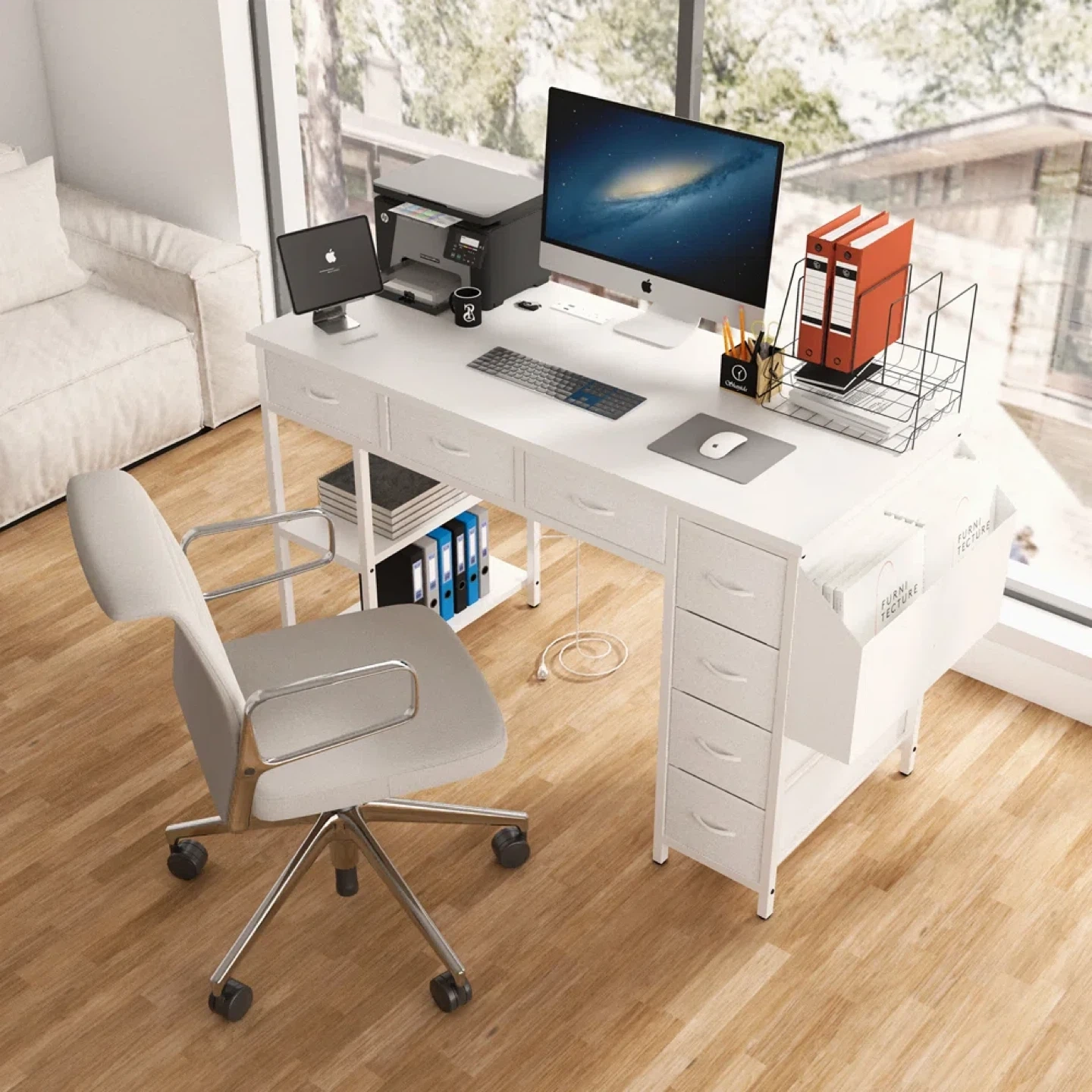 White Computer Desk with Drawers