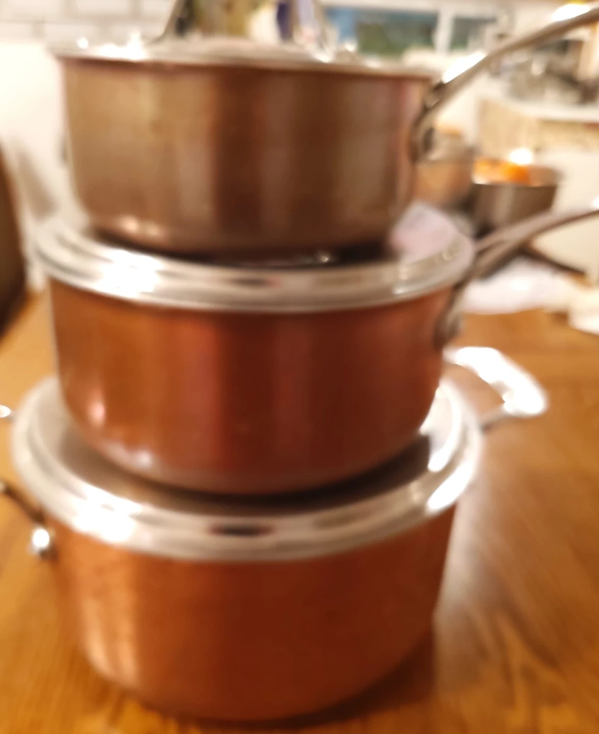 Buy & SellCopper Pots SetCopper Pots Set$80Three stacking copper pots. These pots have silver rims and handles. Great for everyday cooking!ConditionGoodWHERE TO MEETCheck LocationView MapSELLER351349Sault Saint Louis100 reviews0 chats·0 favorites·1 viewsSEND CHAT TO SELLERHi 351349! I’m interested in your listing.Hi 351349! I’m interested in your listing.Get the Karrot app to chatSign In to chat