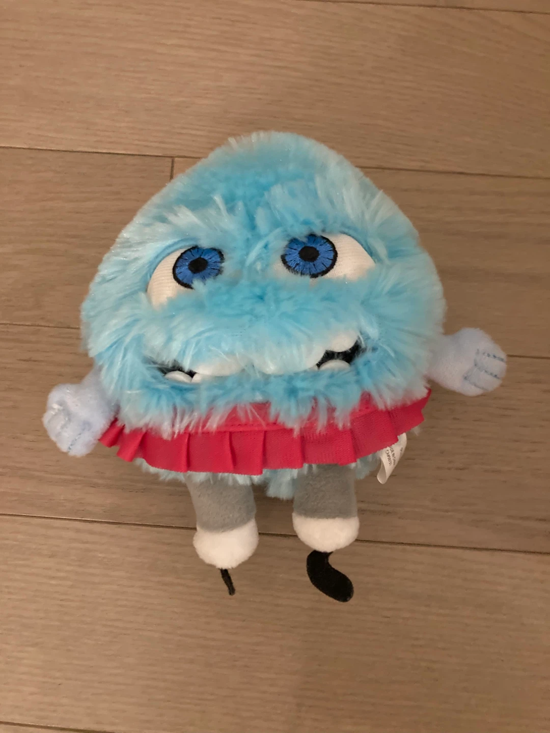 cute blue plush toy! It's in great condition and would be perfect for a child or collector. It has a little red skirt and grey legs with white and black feet. Feel free to message me if you're interested!