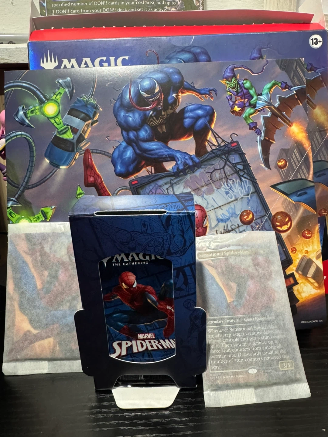 It is opened but EVERY single thing is in there that it came with I just don’t play or really like magic just got it for Spider-Man shoot offers This is the Spidey's Sensational Showdown set for Magic The Gathering, featuring Marvel's Spider-Man. It includes 6 scene cards and 3 play boosters. A display easel is also included. Combine scene cards to make a display!