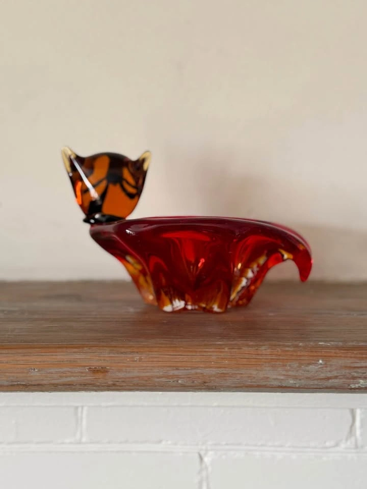 Art Glass, Vintage Decor, Mid Century Modern, MCM, Cat Lover Gift, Murano Style, Chalet Glass, Amberina Glass, Hand Blown Glass, Retro Home, Glass Figurine, Catchall Dish, Red Glass, Amber Glass, Collectible Glass, Toronto Vintage, Kitsch, Art Deco, Animal Sculpture, BoHo Decor