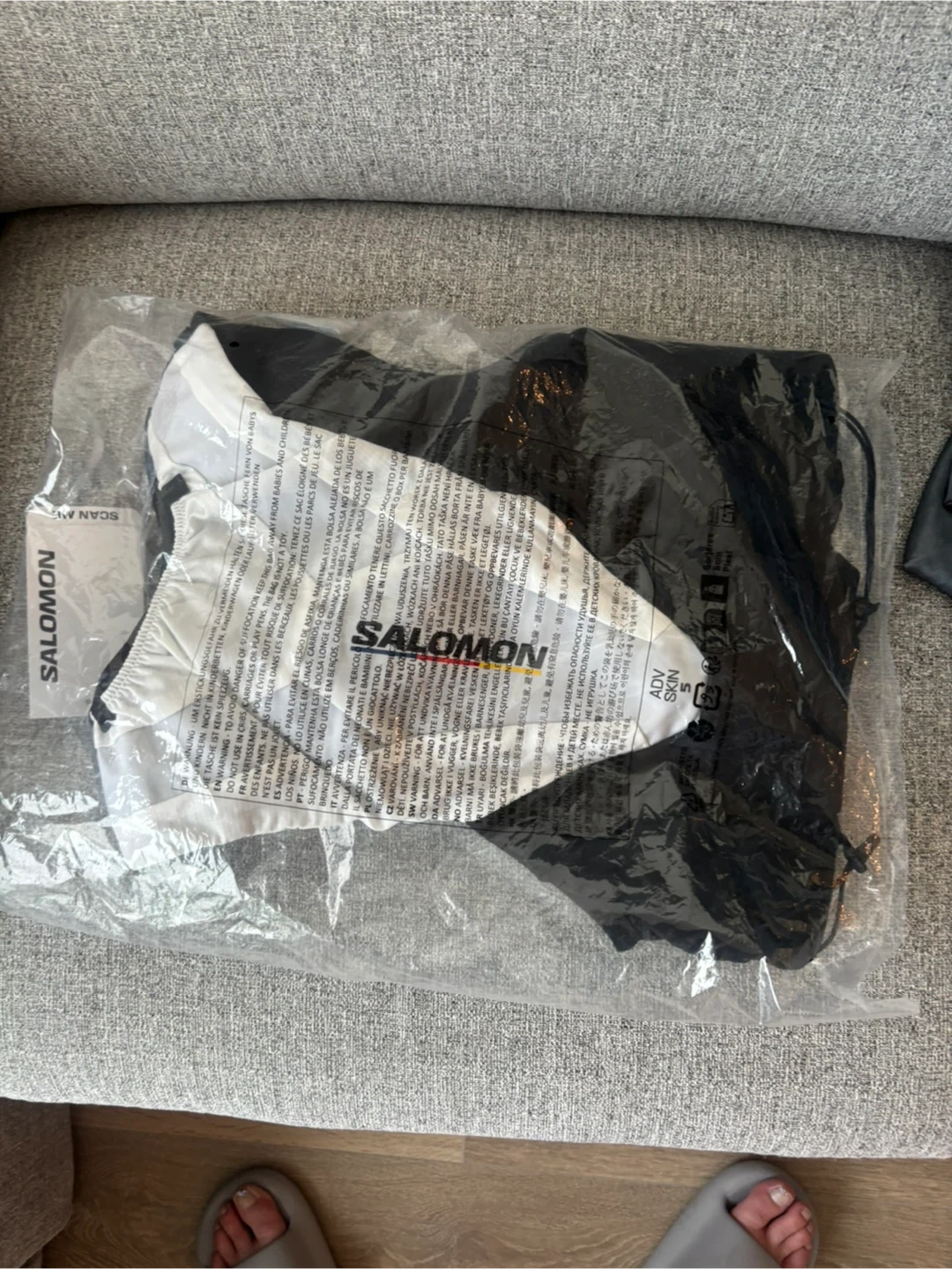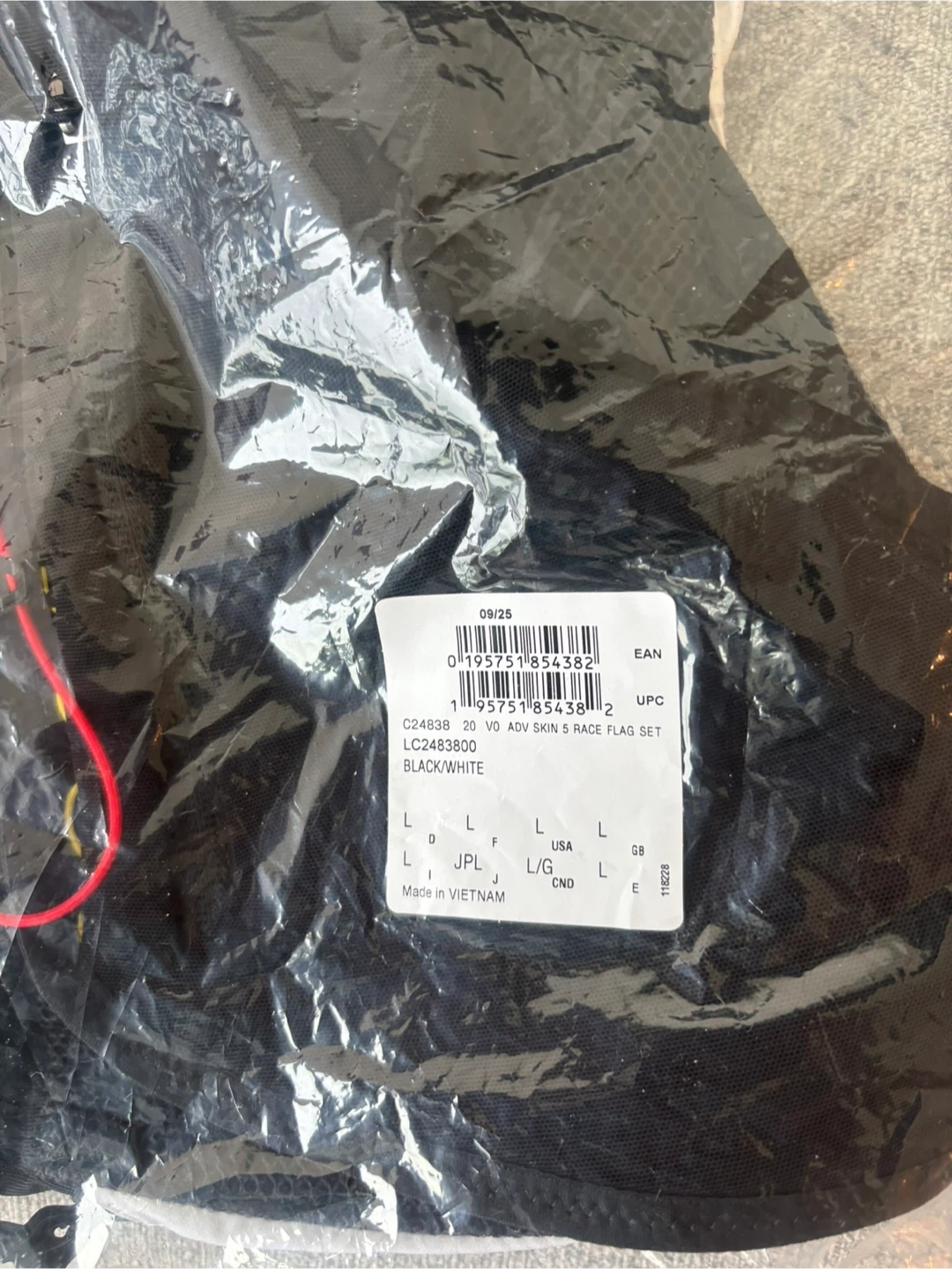 This Salomon ADV Skin 5 Race Flag Set is a hydration vest designed for running. It's black and white.
