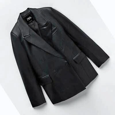 Zara Black Faux Leather Double-Breasted Blazer Jacket XS
