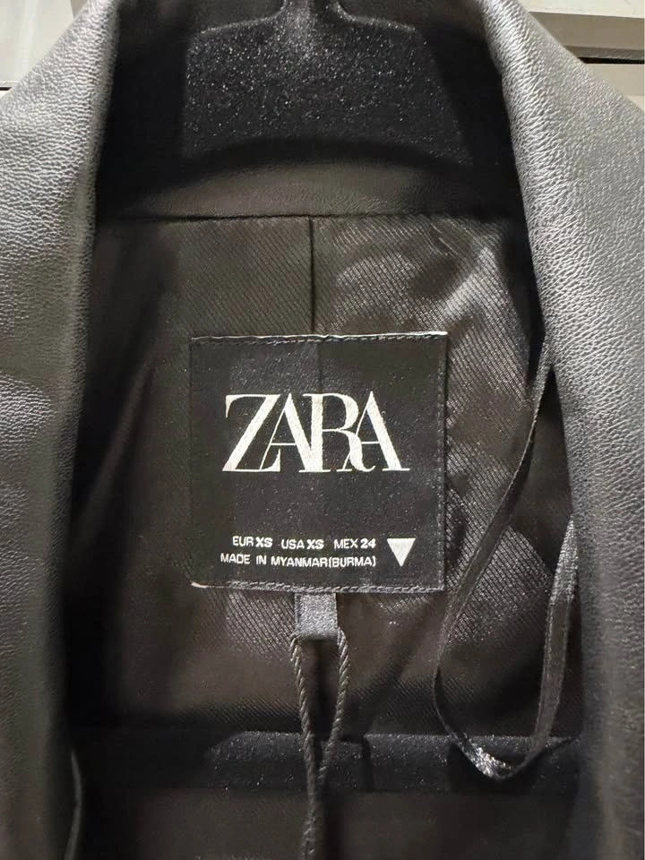 Worn once and in excellent condition! Just needs to be steamed as it has been sitting in my closet. Absolutely no damage whatsoever. Structured double-breasted silhouette in faux leather. Notch lapels and flap pockets. Smooth matte finish for a polished look. Easy to style for day or night. Brand: Zara Colour: Black Size: XS Originally $109 + tax Pick up in North Delta (Sunshine hills area near Krispy Kreme). Can meet at Richmond Centre or Metrotown for $50+ in purchases.