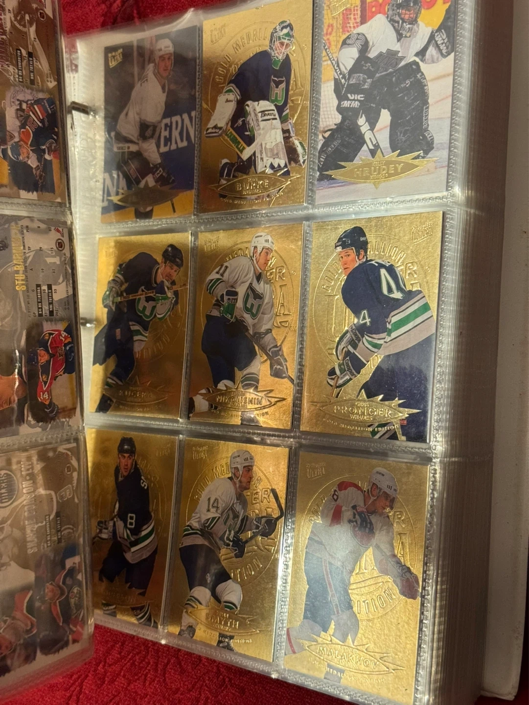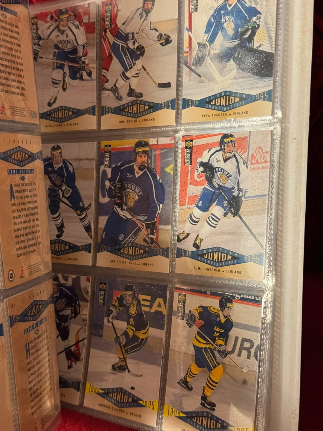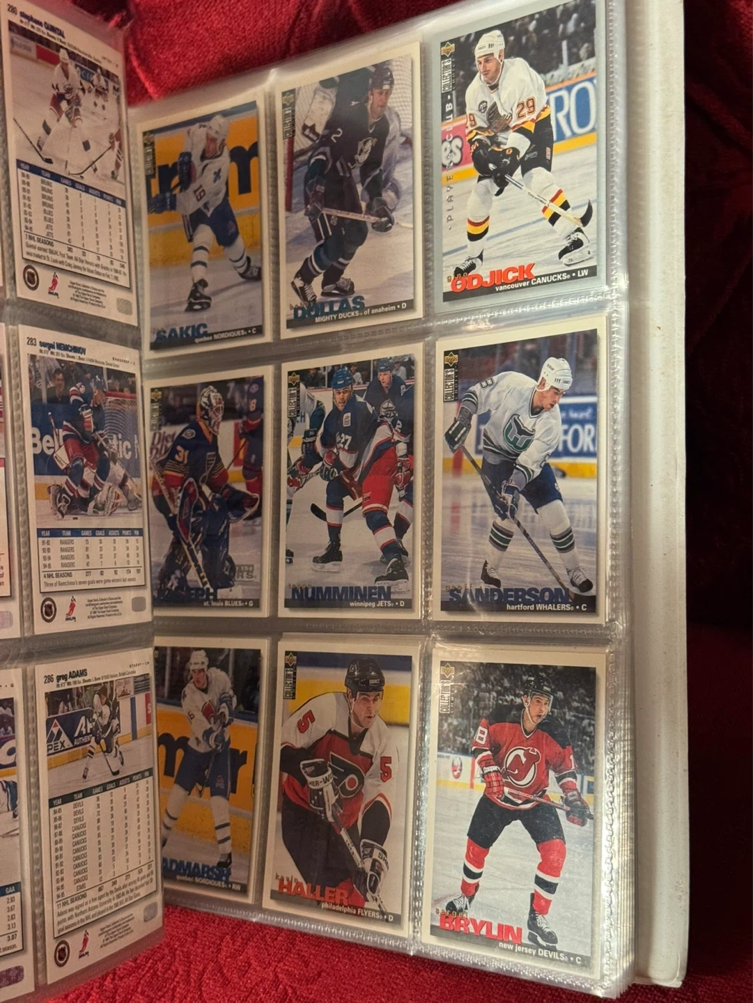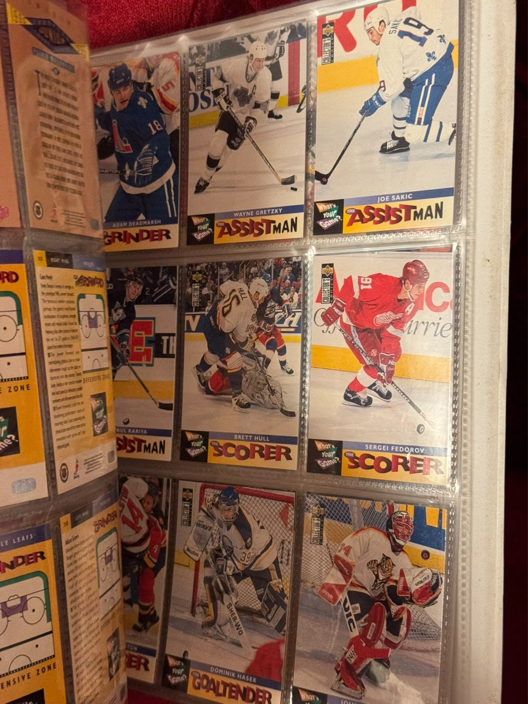 Binder full of hockey cards.