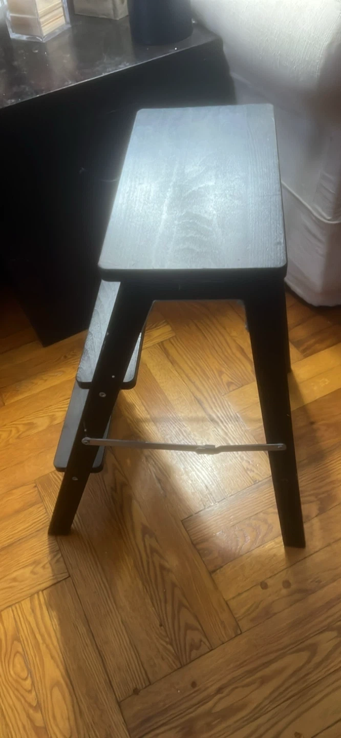 Selling a gently used Ikea Bekvam step stool in black. It's perfect for reaching high shelves or giving you a little boost in the kitchen. This handy stool is lightweight and easy to move around. It's also foldable for easy storage when not in use!