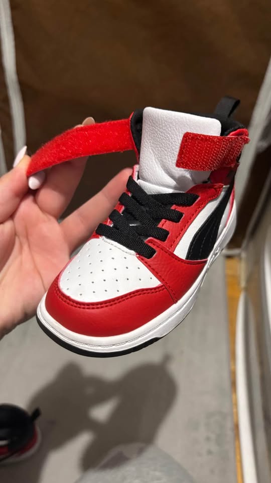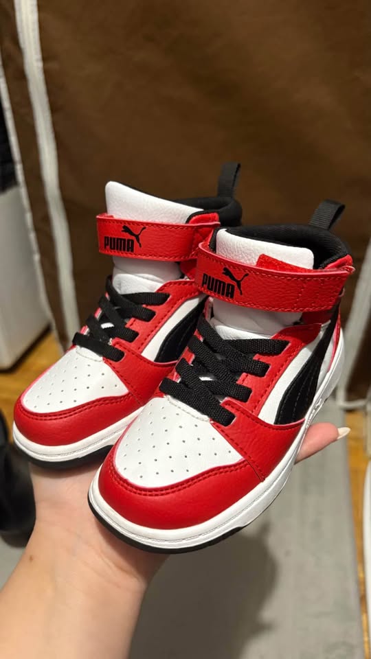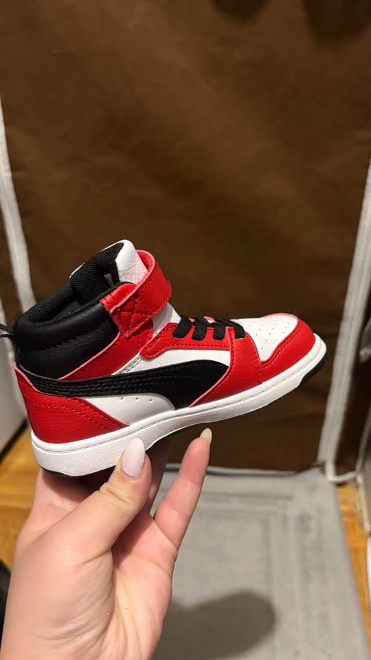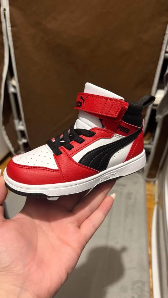 Trendy and comfy, these boy’s Puma Rebound V6 white/black/red mid-top sneakers have durable synthetic leather upper made of at least 20% recycled materials for sustainability and perforations at the toebox for breathability. These retro-inspired basketball sneakers have a lace-up closure for a perfect fit, SOFTFOAM+ sockliner with extra thick heel for enhanced cushioning support as he takes every step. Rubber midsole and outsole offer reliable shock absorption and traction.