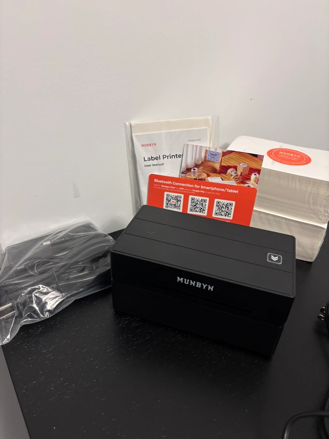 Included:• Munbyn label printer• Power adapter & cable• User manual• Bluetooth setup card• Stack of thermal labels (as shown)