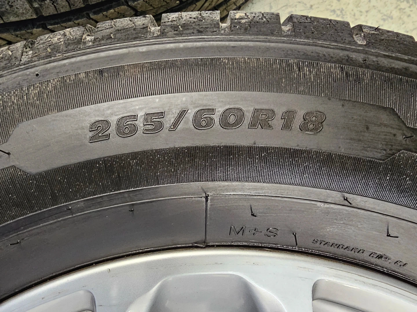 Set of 4 original 18" jeep grand cherokee rims and all season tires 265/60 R18. Rims and tires are like new, no damage, no cracks, no bend. Lots of thread left on tires, TPMS installed
