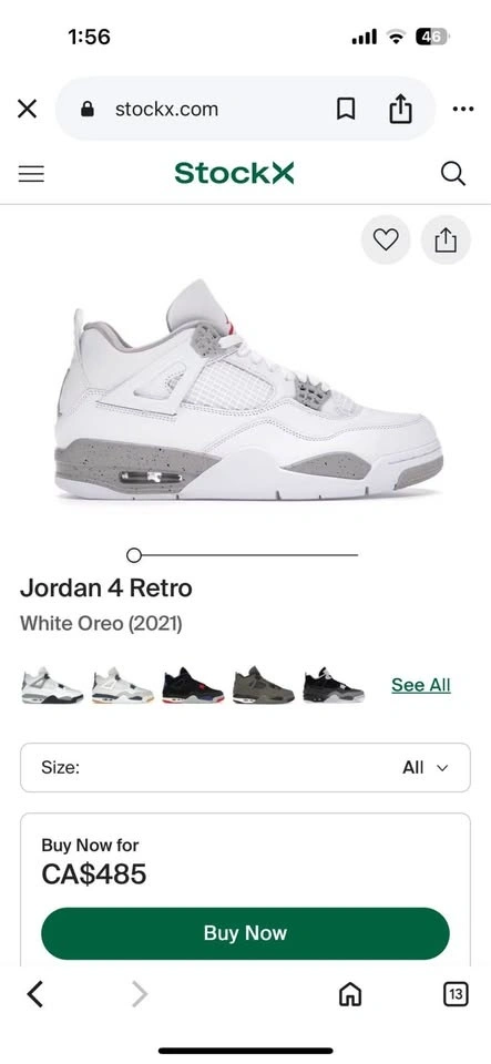 Buy & SellJordan 4 Retro White Oreo 5.5 Y / 7 WJordan 4 Retro White Oreo 5.5 Y / 7 W$315Worn very rarely, maybe 5 times total. Excellent condition! No original box.ConditionGoodWHERE TO MEETCheck LocationView MapSELLERverifiedNicoleLedbury Park701 review0 chats·0 favorites·45 viewsSEND CHAT TO SELLERHi Nicole! I’m interested in your listing.Hi Nicole! I’m interested in your listing.Get the Karrot app to chatSign In to chat