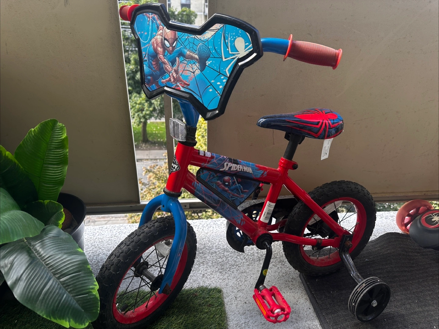 Selling a Spiderman themed kids bike! It's in excellent condition and perfect for a little one learning to ride. Features a fun Spiderman design, training wheels, and is ready for a new home!