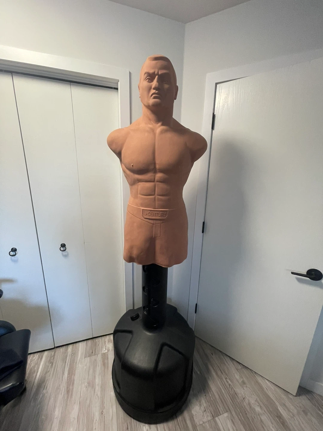 This is a Century Bob punching bag. It's designed for martial arts training and boxing practice. The torso is made of durable material, and the base can be filled with sand or water for stability.