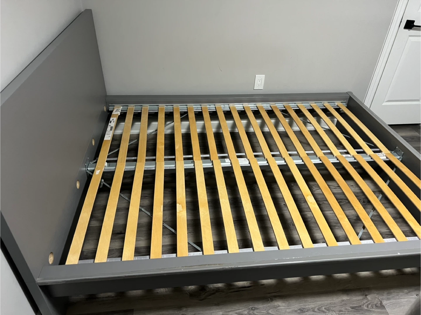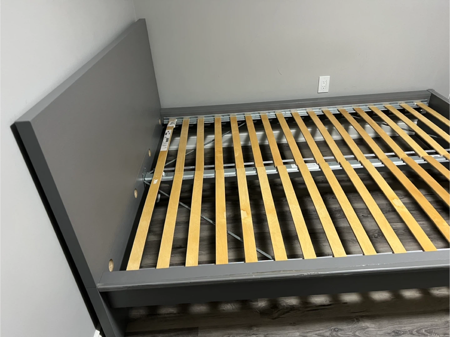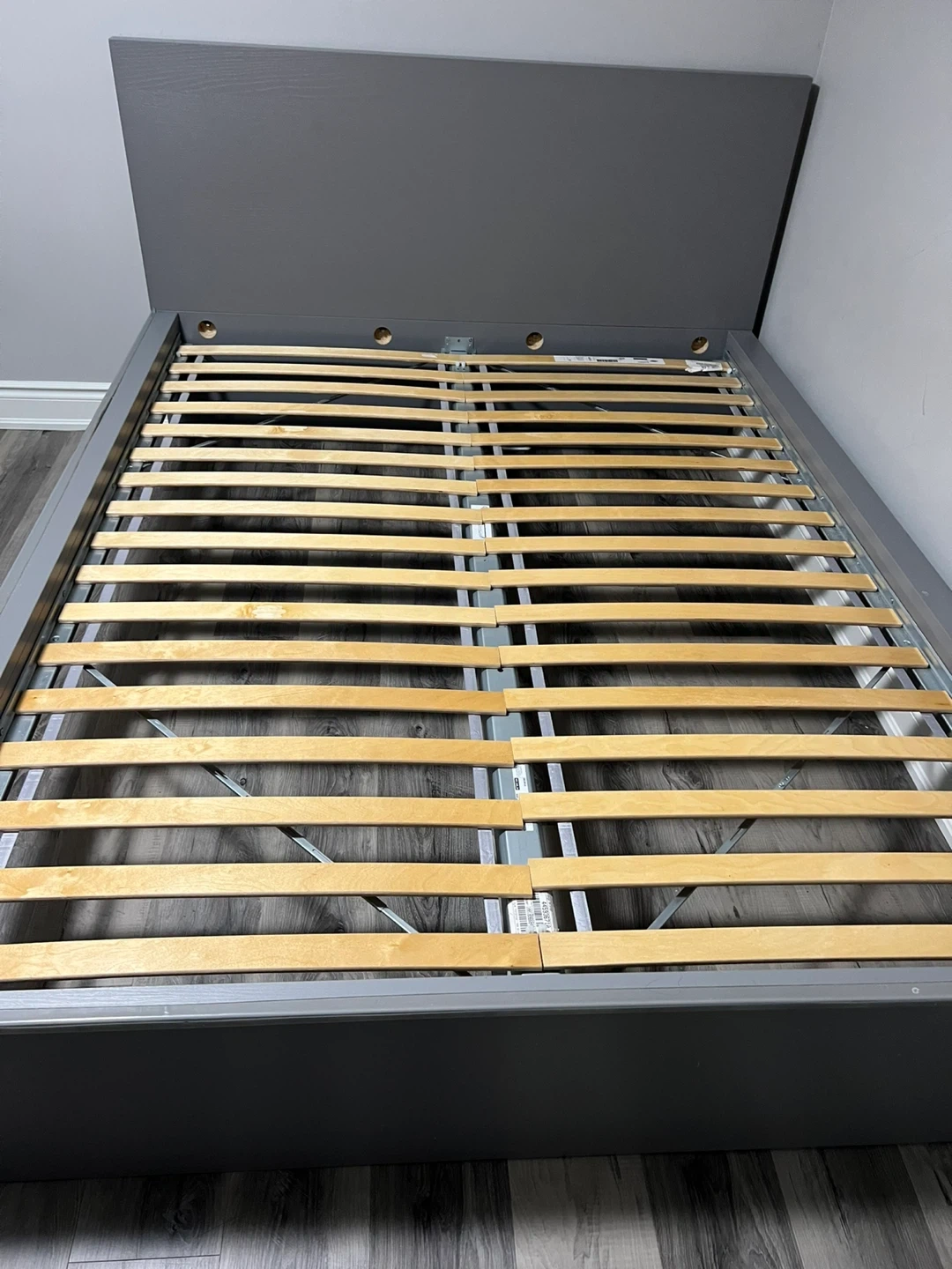 🛏️✨ IKEA Bed Frame,high, gray Stained/Queen ——Modern Comfort for Your Bedroom!