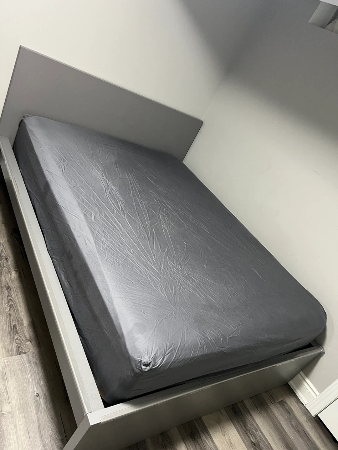 🛏️✨ IKEA Bed Frame,high, gray Stained/Queen ——Modern Comfort for Your Bedroom!
