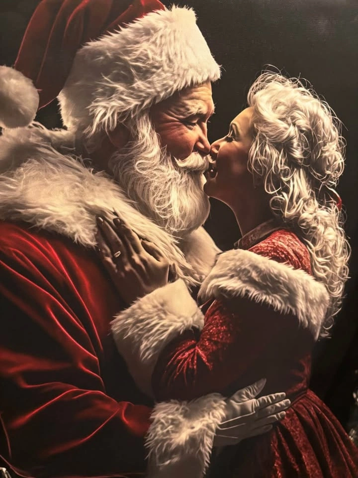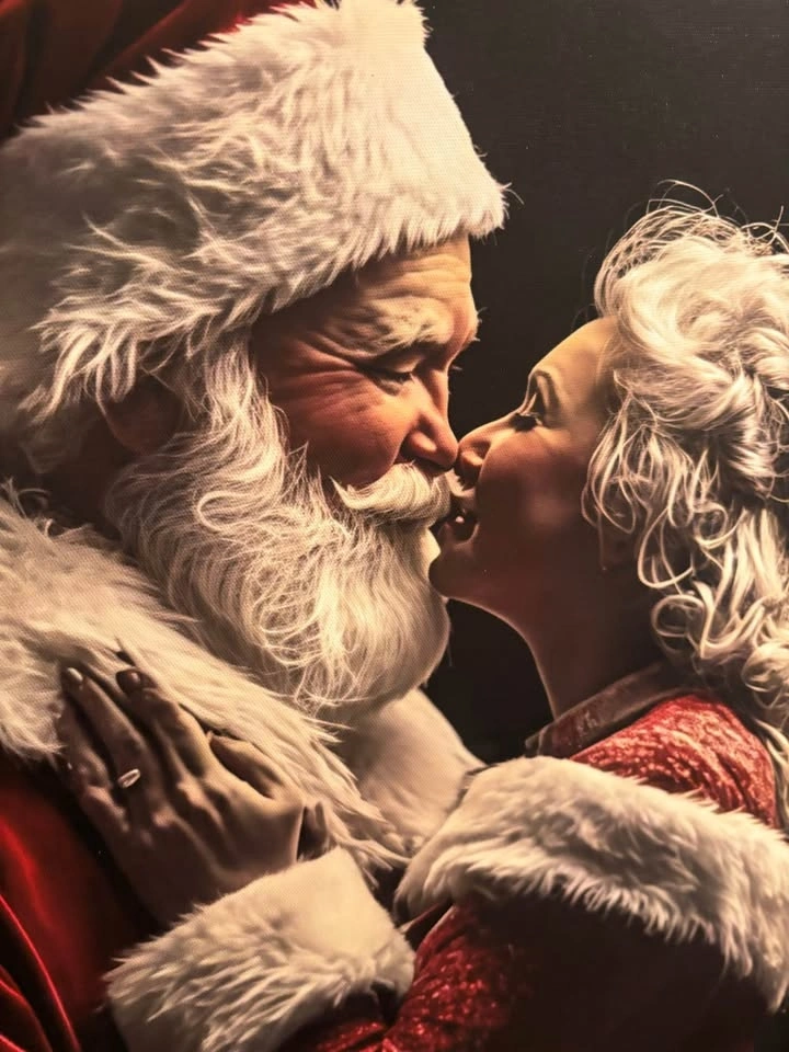 Beautiful Santa and Mrs.Claus print on canvas. Framed onto 31.5”x19.7”x1.5” wooden frame. Ready to hang with sawtooth hanger attached.