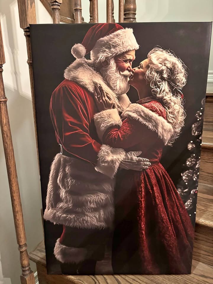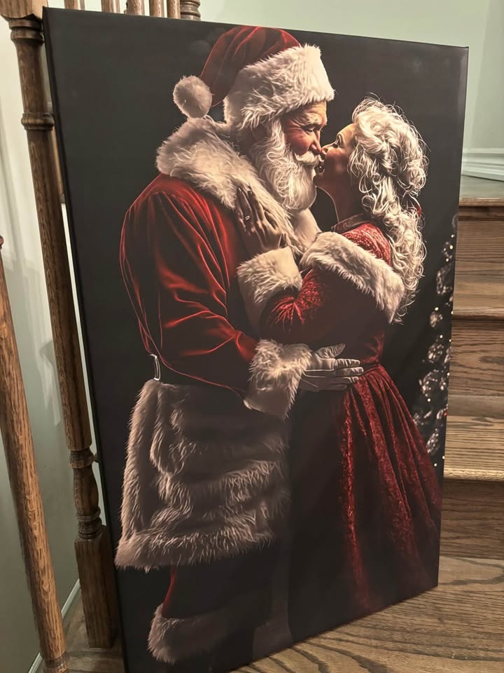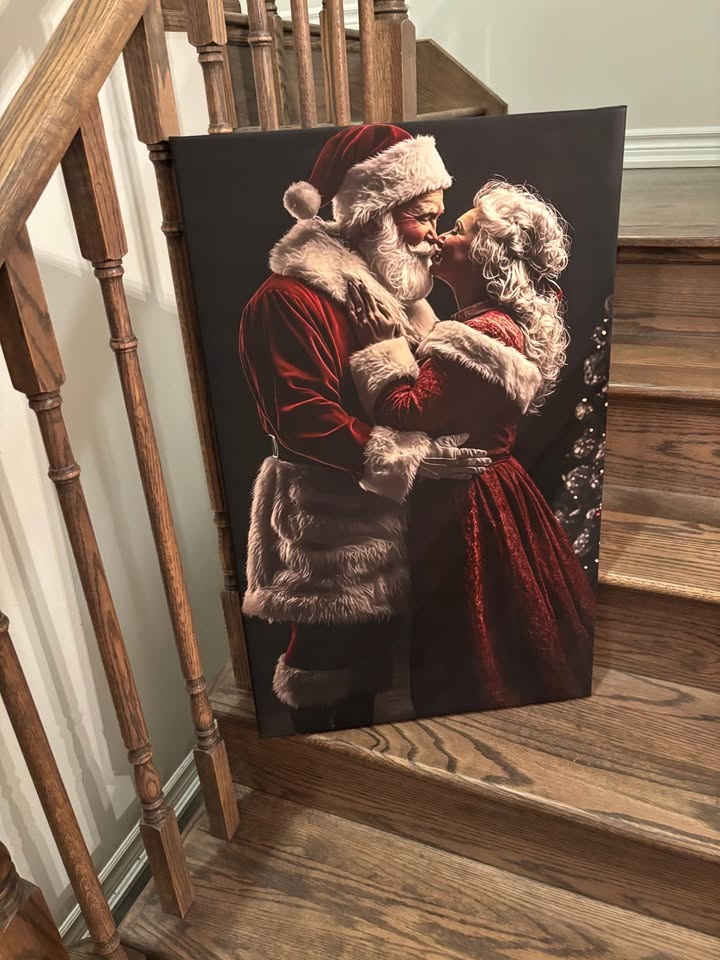Beautiful Santa and Mrs.Claus print on canvas. Framed onto 31.5”x19.7”x1.5” wooden frame. Ready to hang with sawtooth hanger attached.