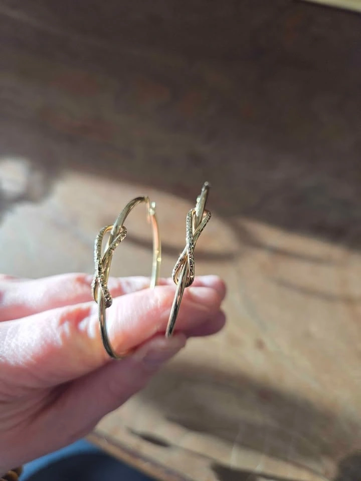 They feature an infinity loop detail at the front which has little hammered beveled edges that catch the light and glimmer.