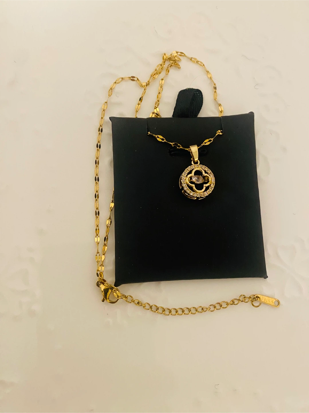 Selling a new (unused) lovely gold color stainless steel marked clover necklace. It's in great condition and adds a touch of elegance to any outfit!