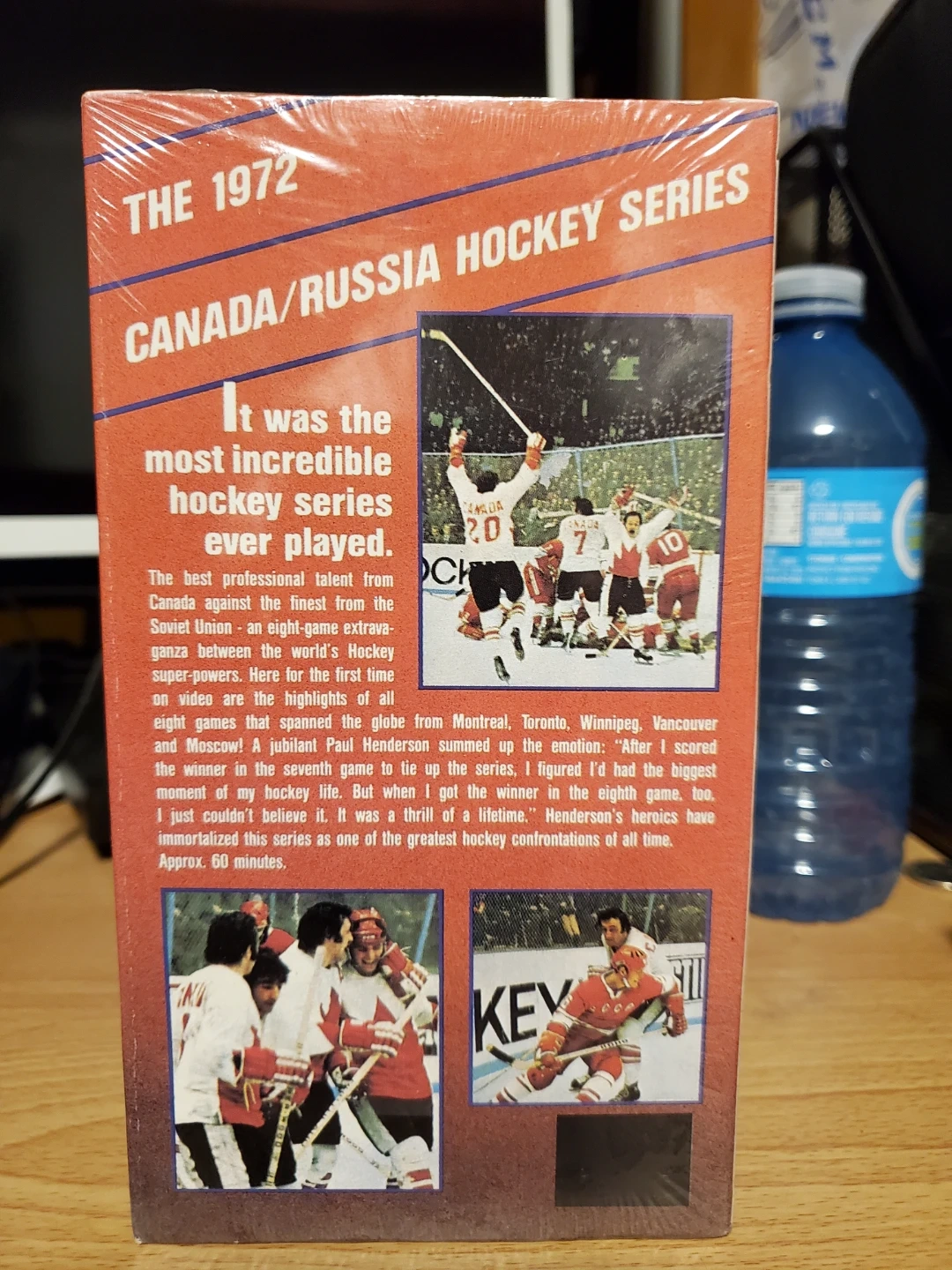 Selling a vintage VHS tape of The 1972 Canada/Russia Hockey Series! This tape highlights the best professional talent from Canada against the Soviet Union. It features highlights of all eight games from Montreal, Toronto, Winnipeg, Vancouver, and Moscow! It runs for approximately 60 minutes