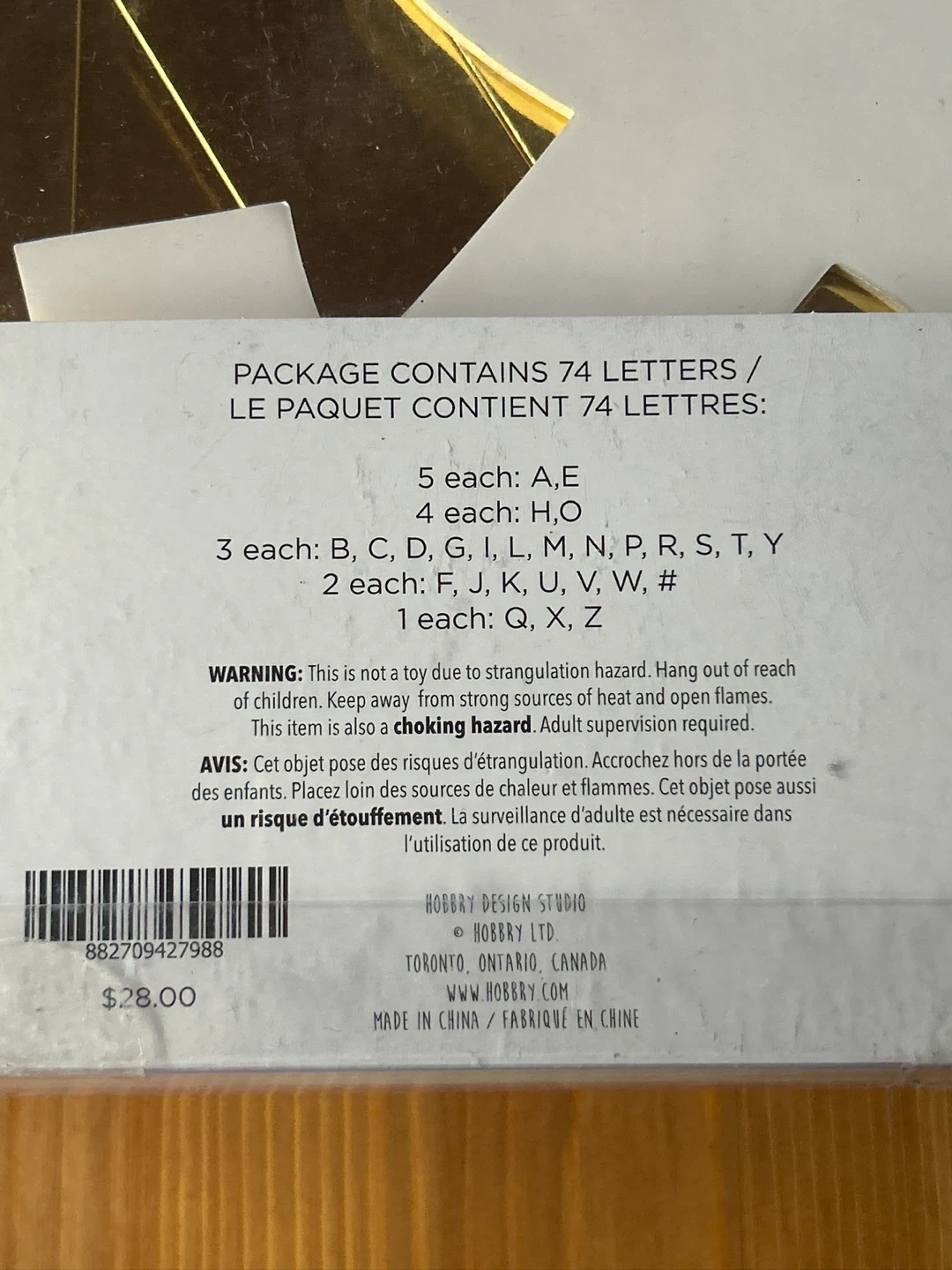 All letters shown in the package included, except for one letter “i”