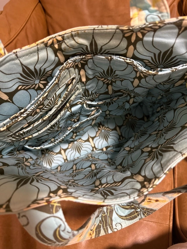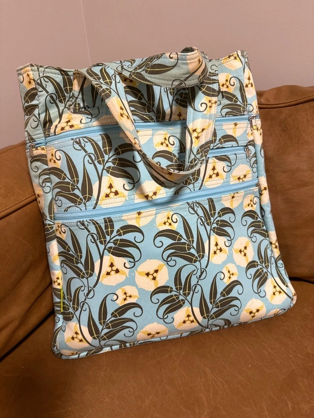 This stylish Amy Butler tote bag features a vibrant floral pattern in shades of blue, cream, and brown. With its multiple zippered pockets on the exterior and a spacious interior complete with organizational compartments, it's perfect for everyday use. This bag is in good condition, showing some signs of wear, which adds to its unique charm. Here are some additional features: Durable fabric construction, Multiple exterior zippered pockets, Spacious main compartment, Interior organizational pockets. I've checked similar listings on Kijiji and am pricing this tote competitively at $30. If you're reading this, the tote is still available and waiting to accompany you on your next adventure!