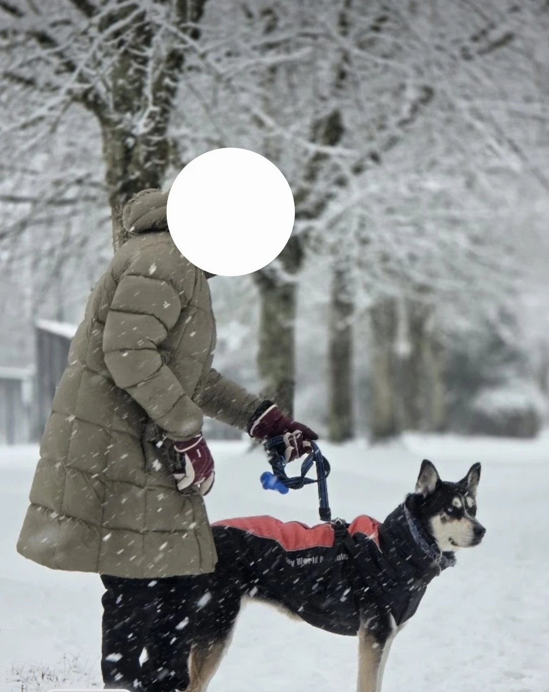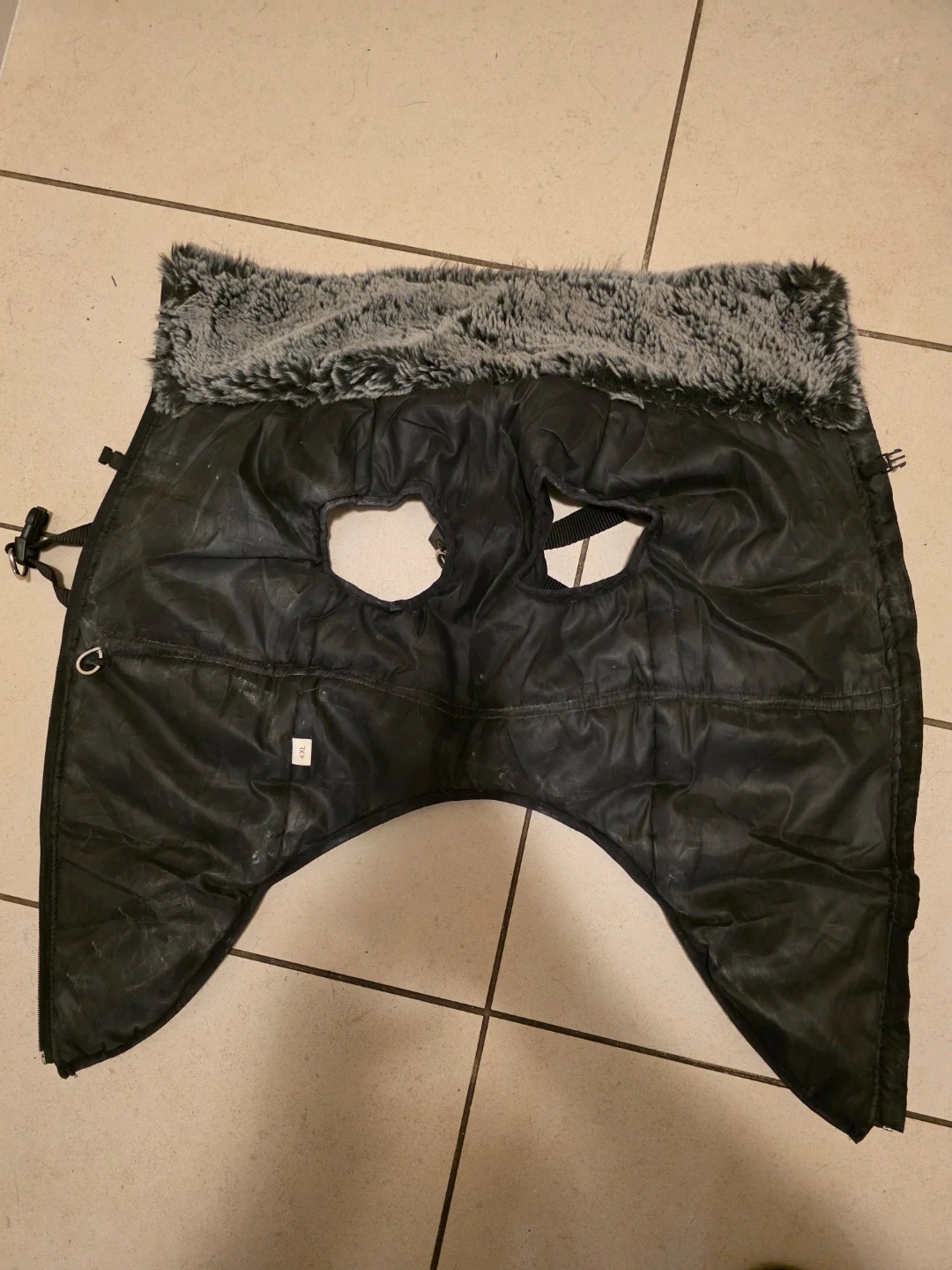 Selling a gently used dog parka with zipper. It's black with pink accents for medium to large sized dogs. Flexible belt with buckle to make size adjustments. Perfect for taking your furry friends on adventures!