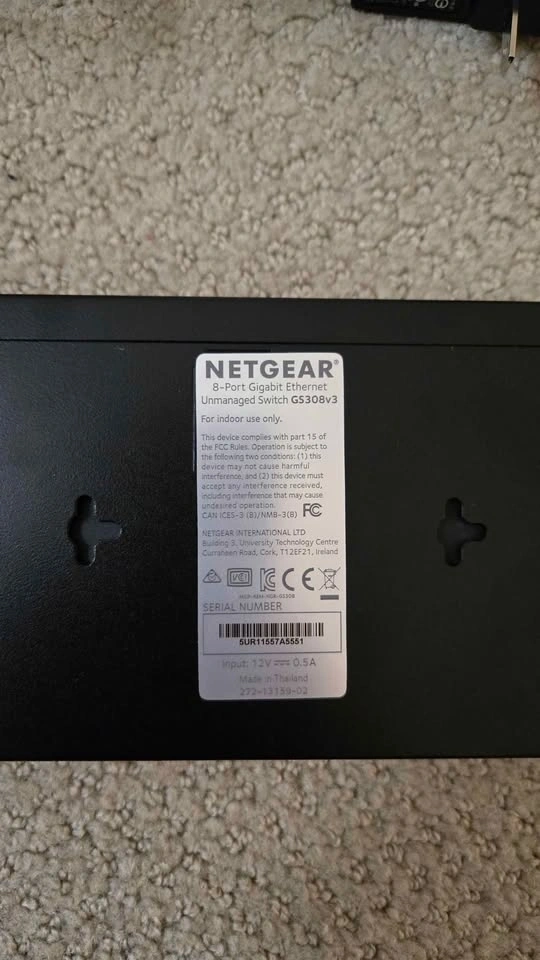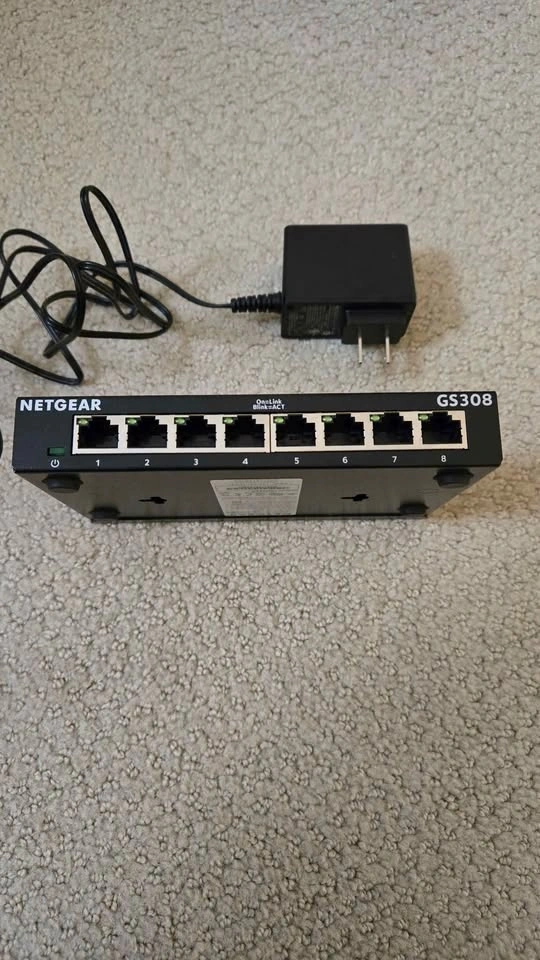 Selling a NETGEAR GS308v3 8-Port Gigabit Ethernet Unmanaged Switch. This is a reliable, plug-and-play device perfect for expanding your home or office network with high-speed wired connections. Key Features: 8 Gigabit Ports: Supports 10/100/1000Mbps for fast data transfers. Plug-and-Play: No software or configuration needed. Quiet Operation: Fanless design makes it silent—ideal for noise-sensitive environments. Power Efficient: Energy-efficient technology helps save power. Condition: Well-maintained and includes the original 12V 0.5A power adapter. Pick-up: King and Shaw.