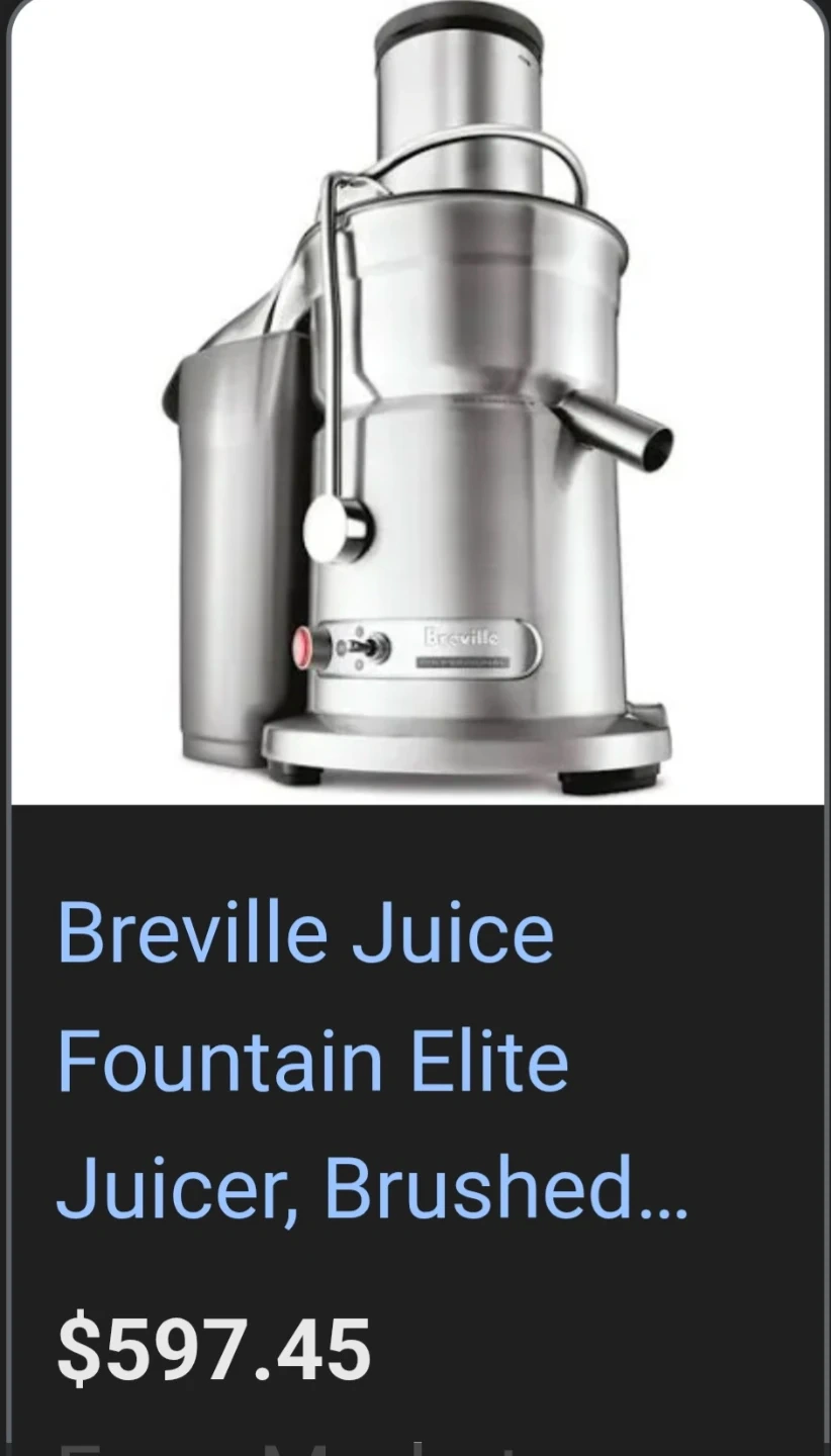 This is the Breville Juice Fountain Elite Juicer. It's constructed with durable brushed stainless steel. This juicer is great for quickly and efficiently extracting juice from fruits and vegetables.