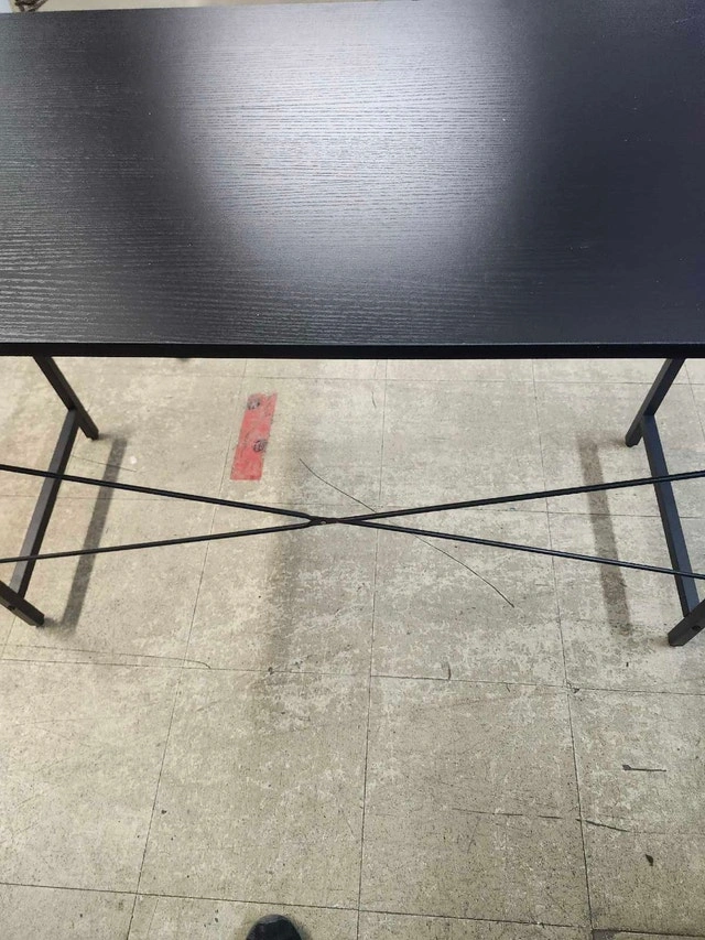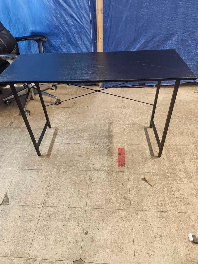 This black desk is sturdy and ready for a new home! It does show some signs of wear, with a few scratches on the surface, as shown in the pictures. Despite the imperfections, it's a great workspace for your home office or study area. Colour: Black. Material: Wood and metal. Condition: Used, with visible scratches. I've seen similar desks listed on Kijiji for around $40-$70, so I'm pricing this one at $50, considering its condition. Cash accepted.